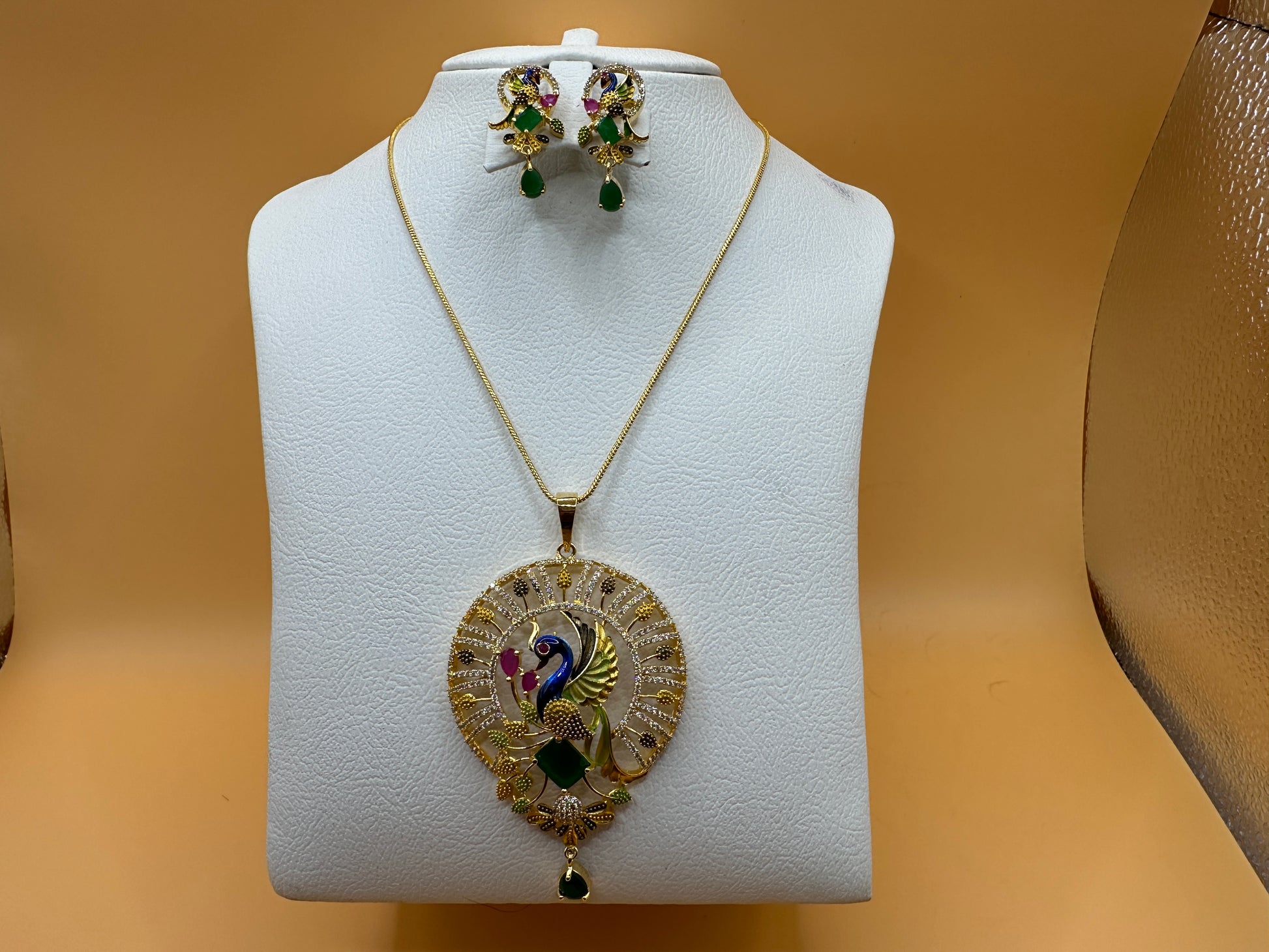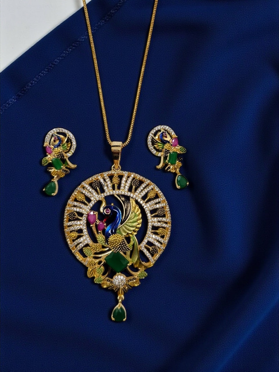 1051-American Diamond Delicate Pendant Set -Green
