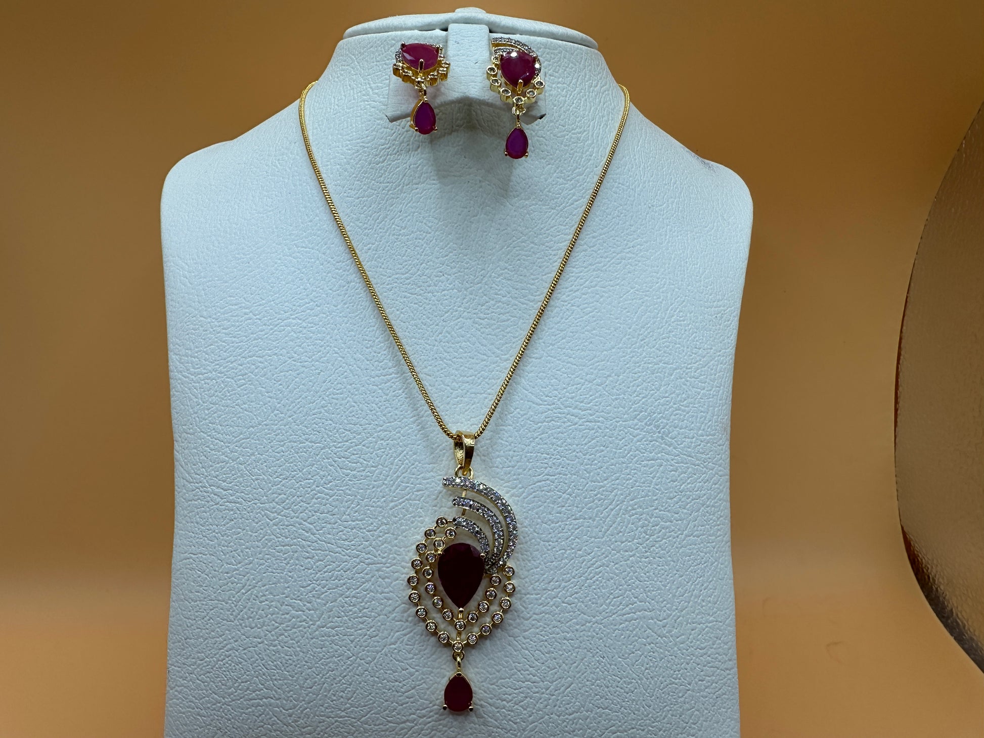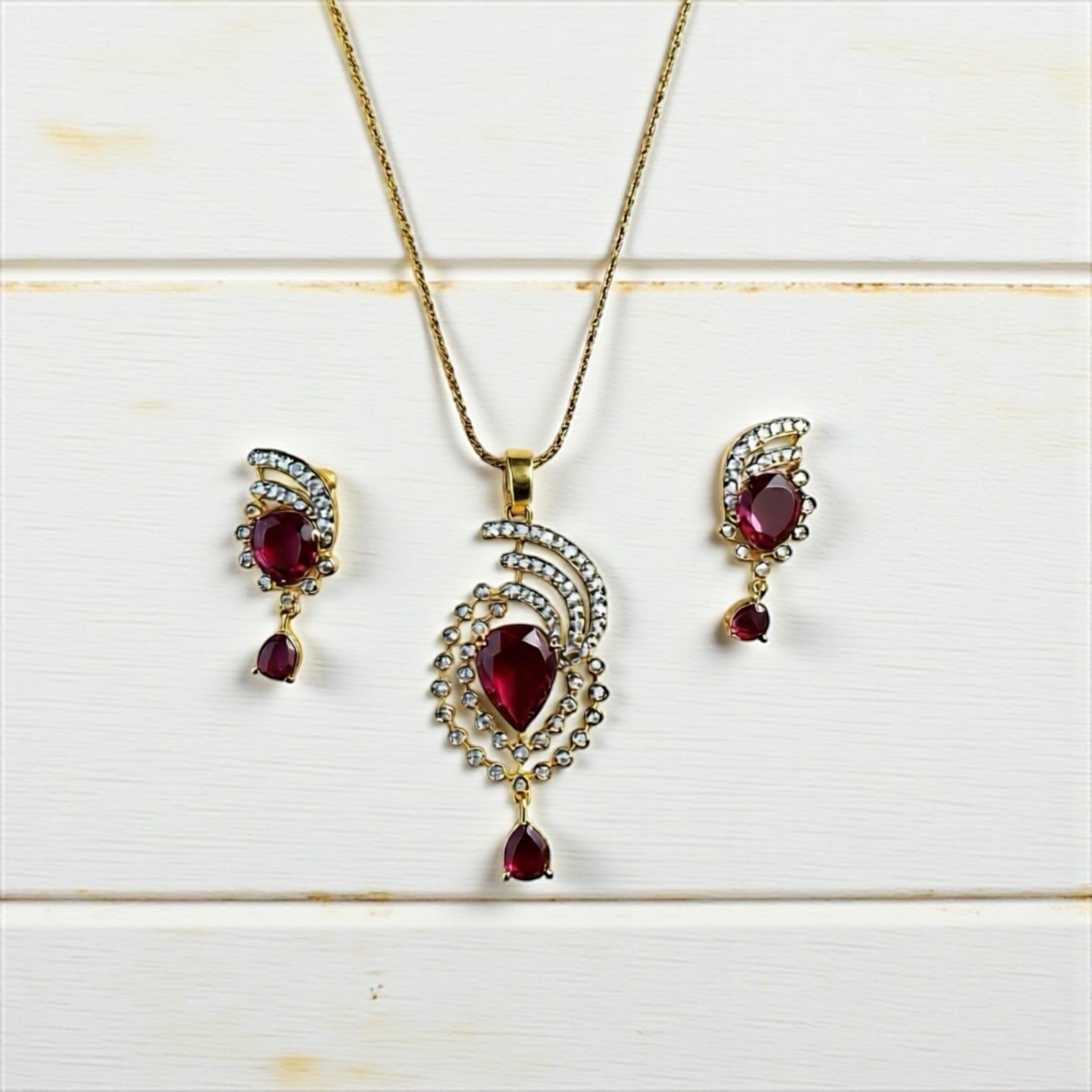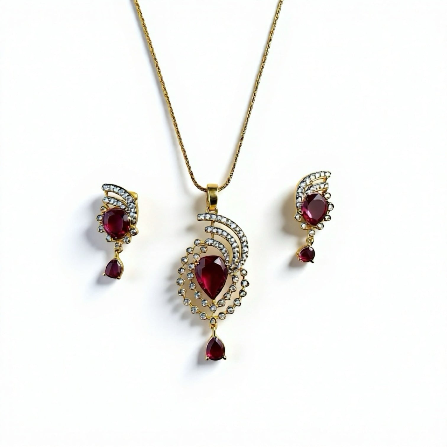 1058-American Diamond Delicate Pendant Set -Ruby