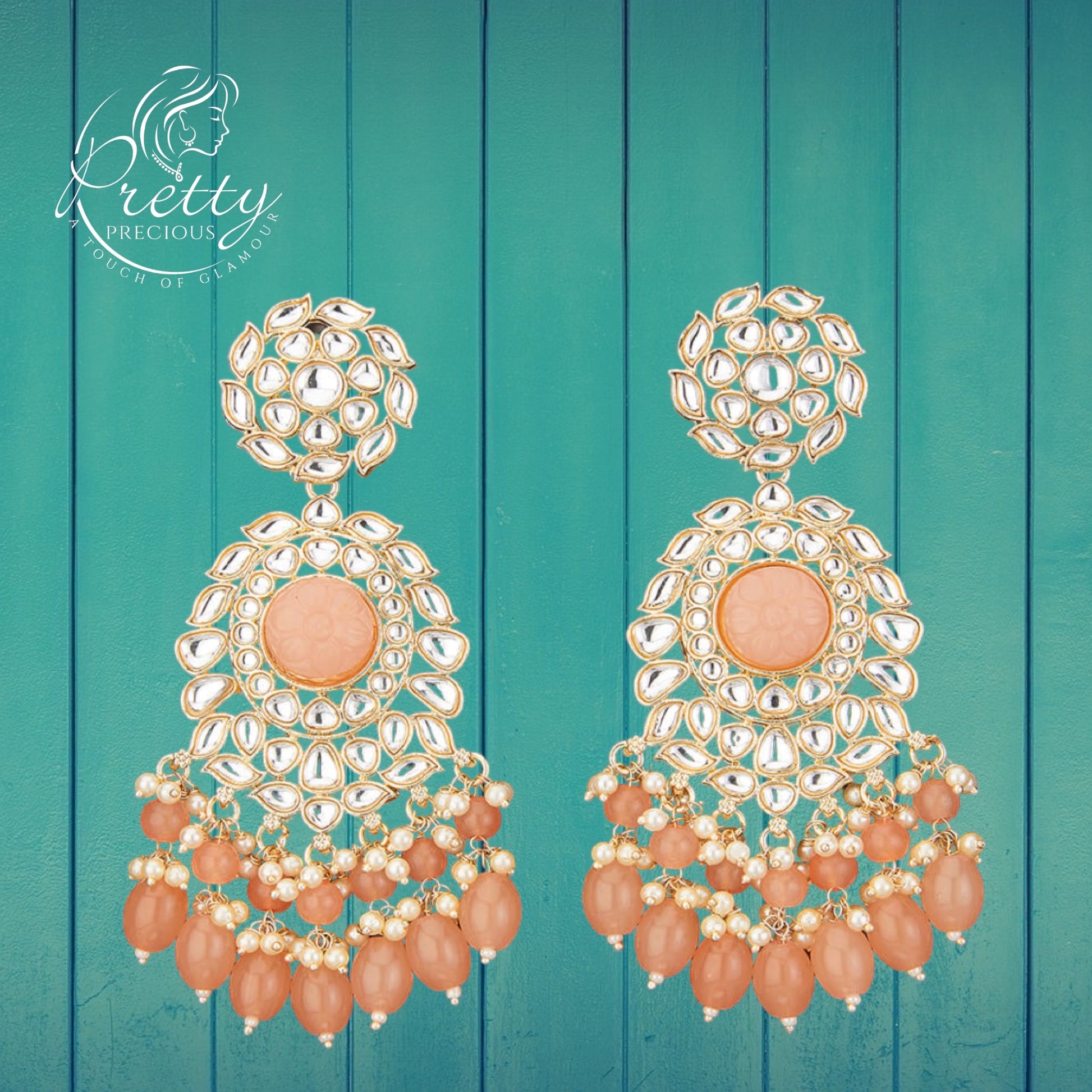 108930-PH Indo Western Stone Earring With Gold Plating-Peach