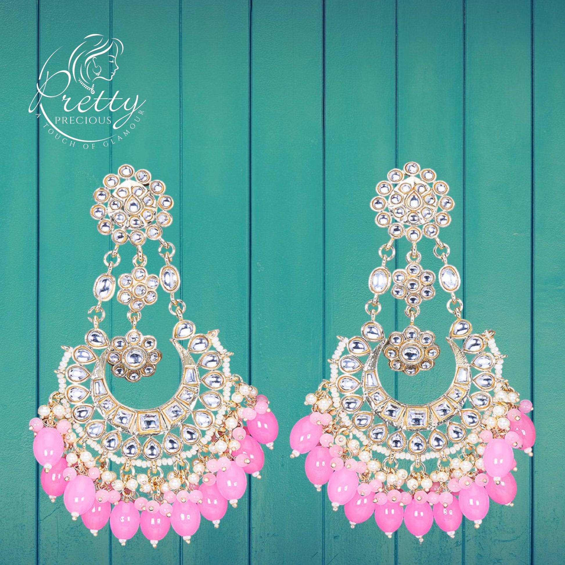 109331 Indo Western Pearl Earring With Gold Plating-Light Pink