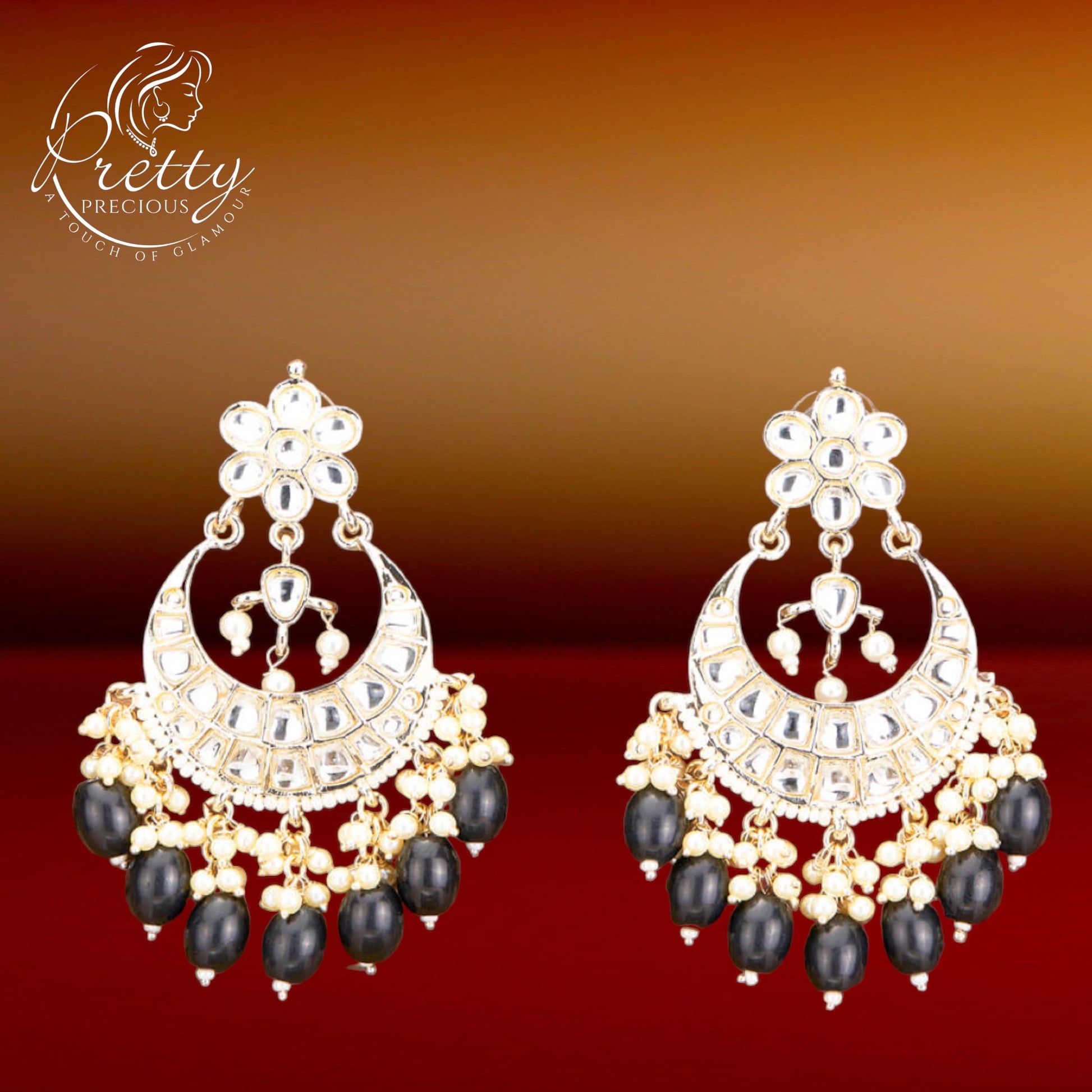110377 Indo Western Chand Earring With Gold Plating-Black
