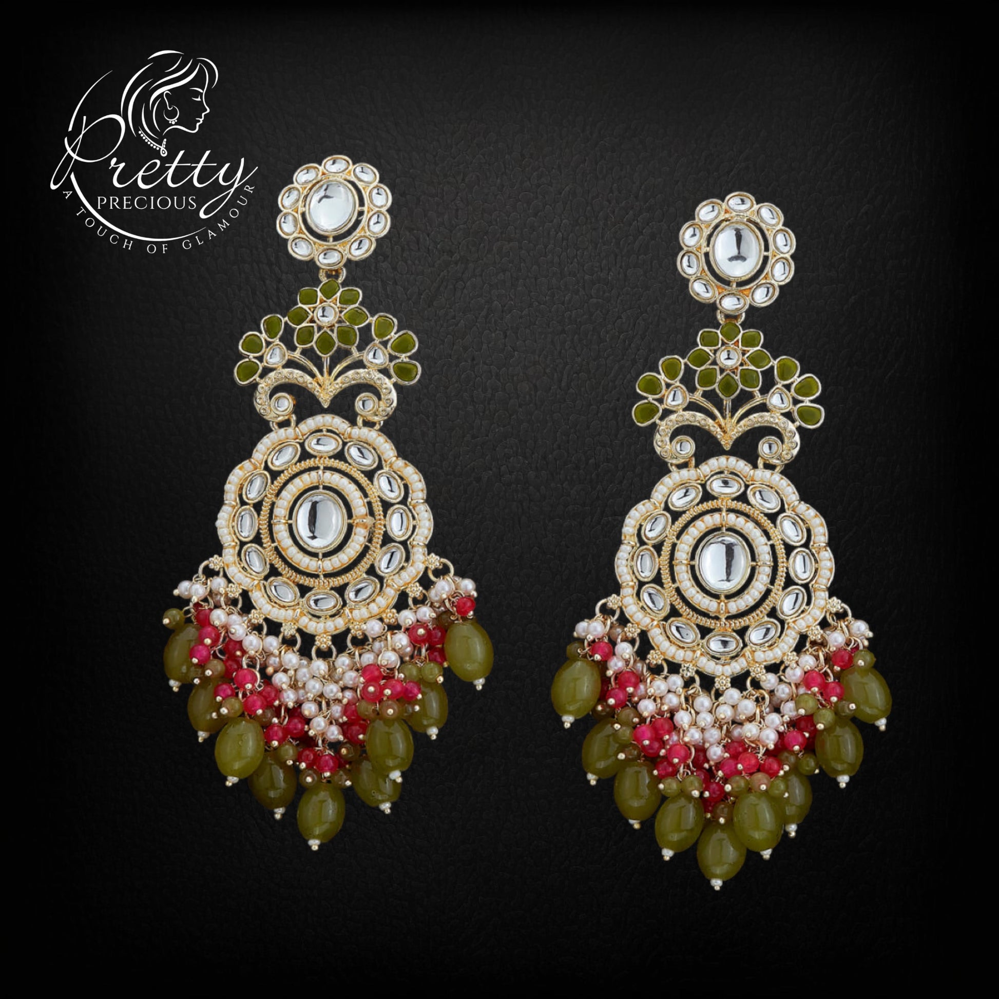 110786 Indo Western Beads Earring With Gold Plating-Mehandi