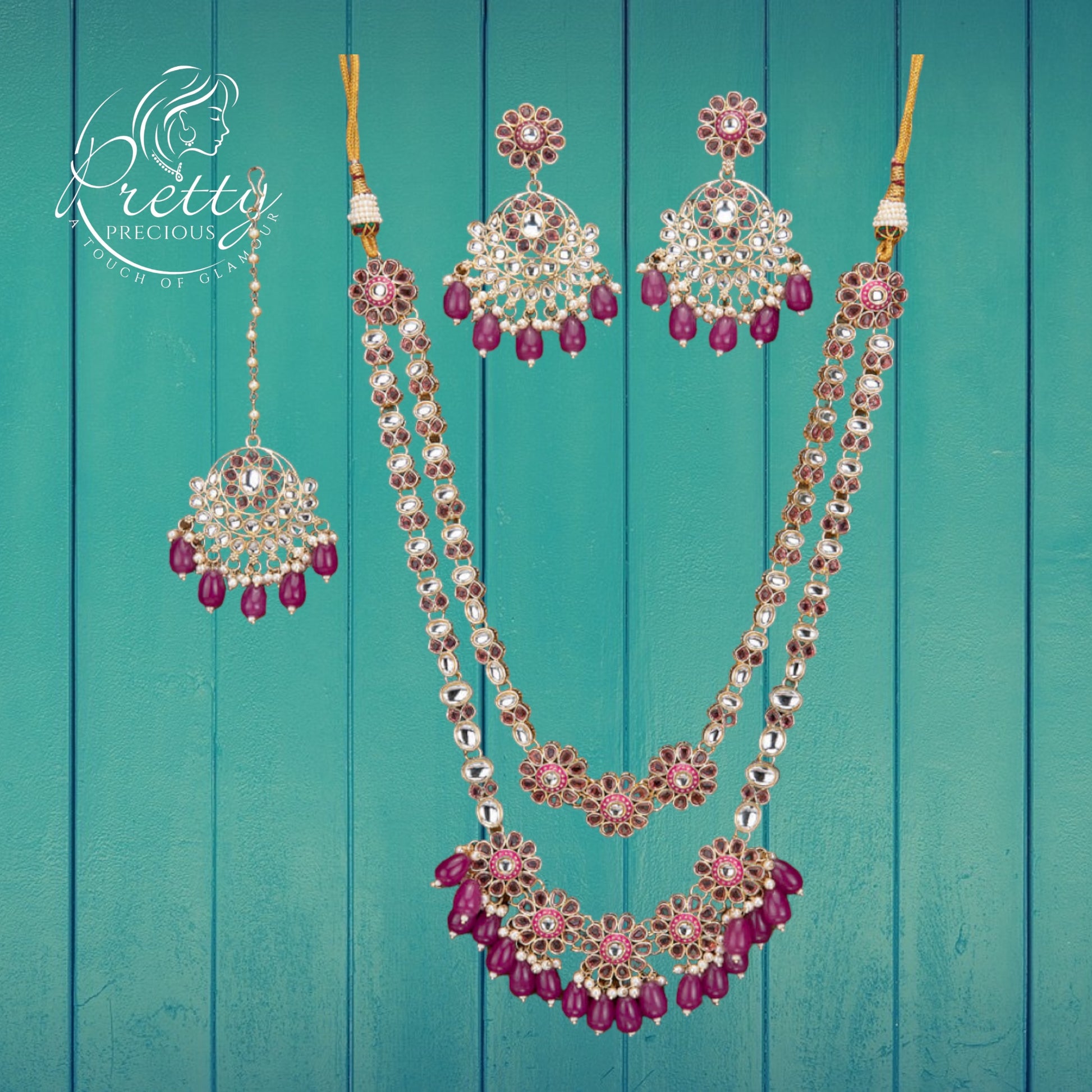110844 Indo Western Long Necklace With Gold Plating-Purple