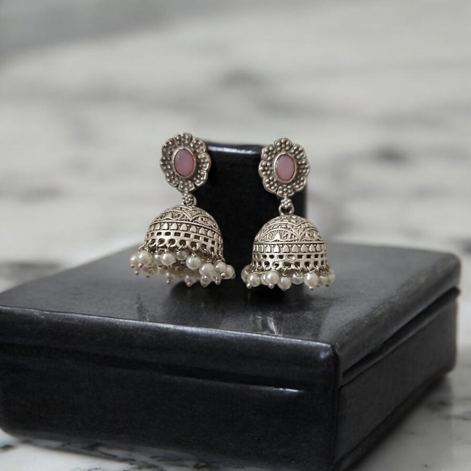 35105 Pretty Precious Fashion Oxidised Silver Stylish Party Wear Earrings for Women and Girls-Pink
