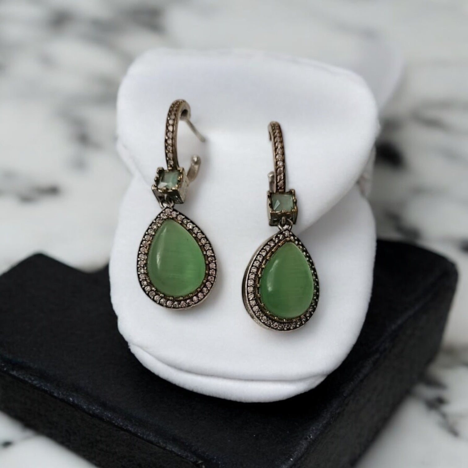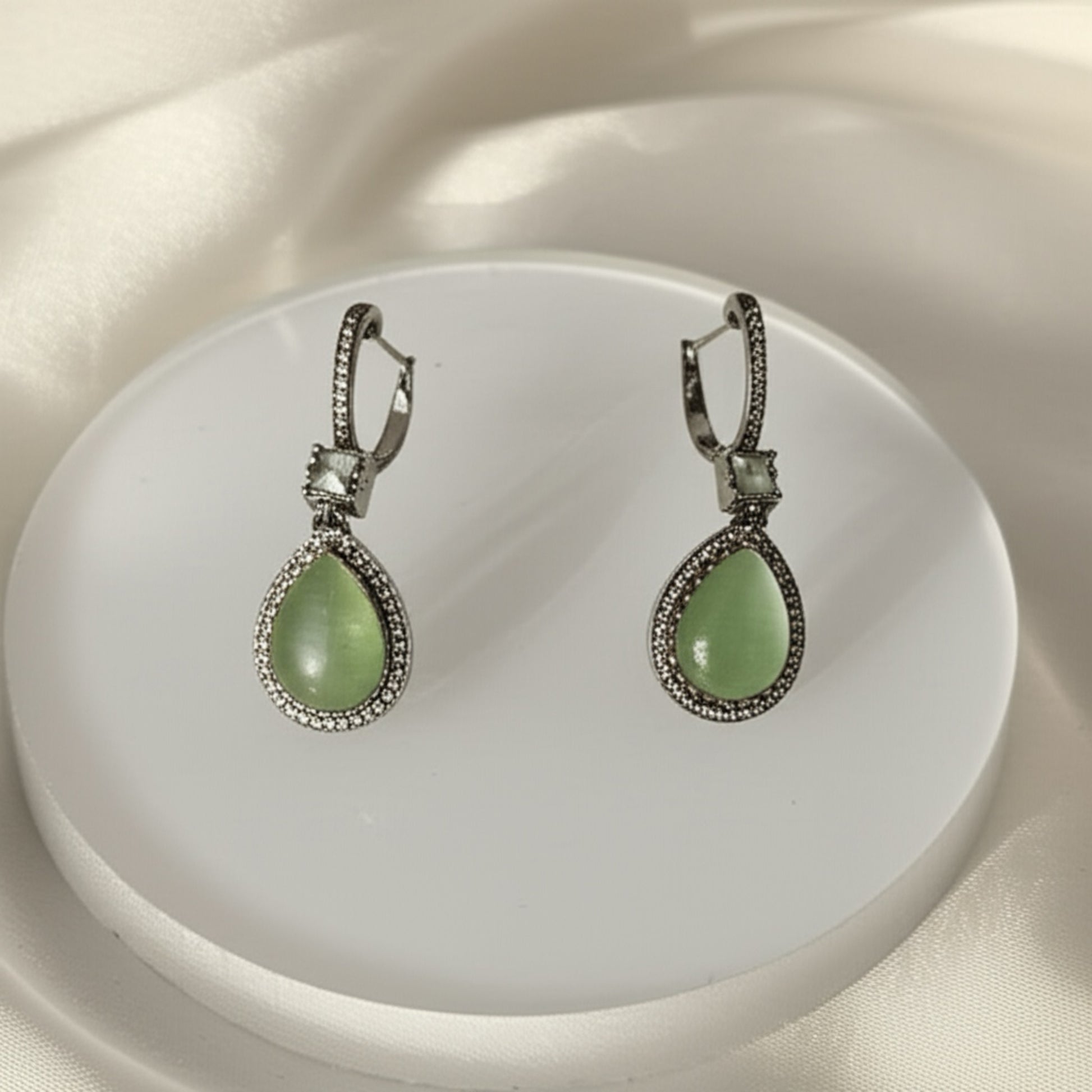 35250 Pretty Precious Fashion Oxidised Silver Stylish Party Wear Earrings for Women and Girls-Green