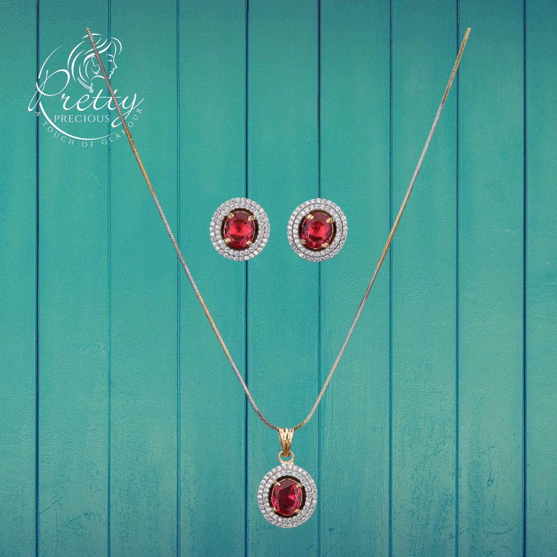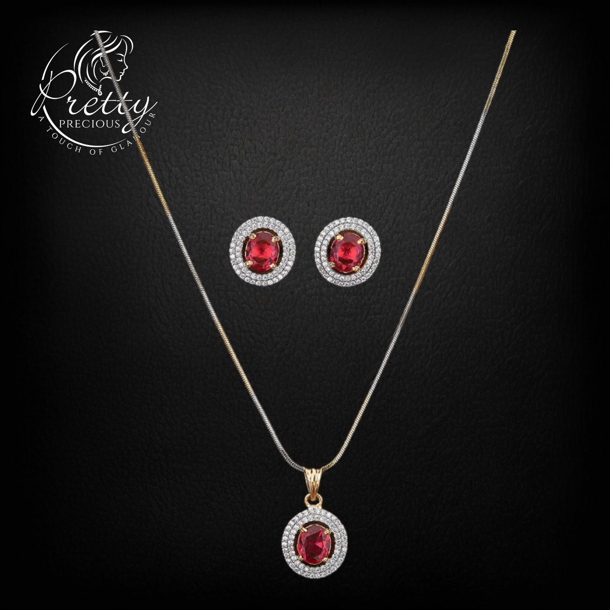 417504 Cz Classic Pendant Set With 2 Tone Plating-Rani