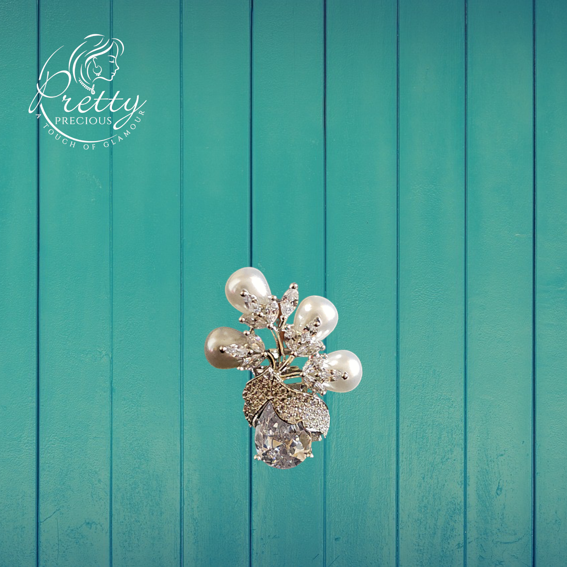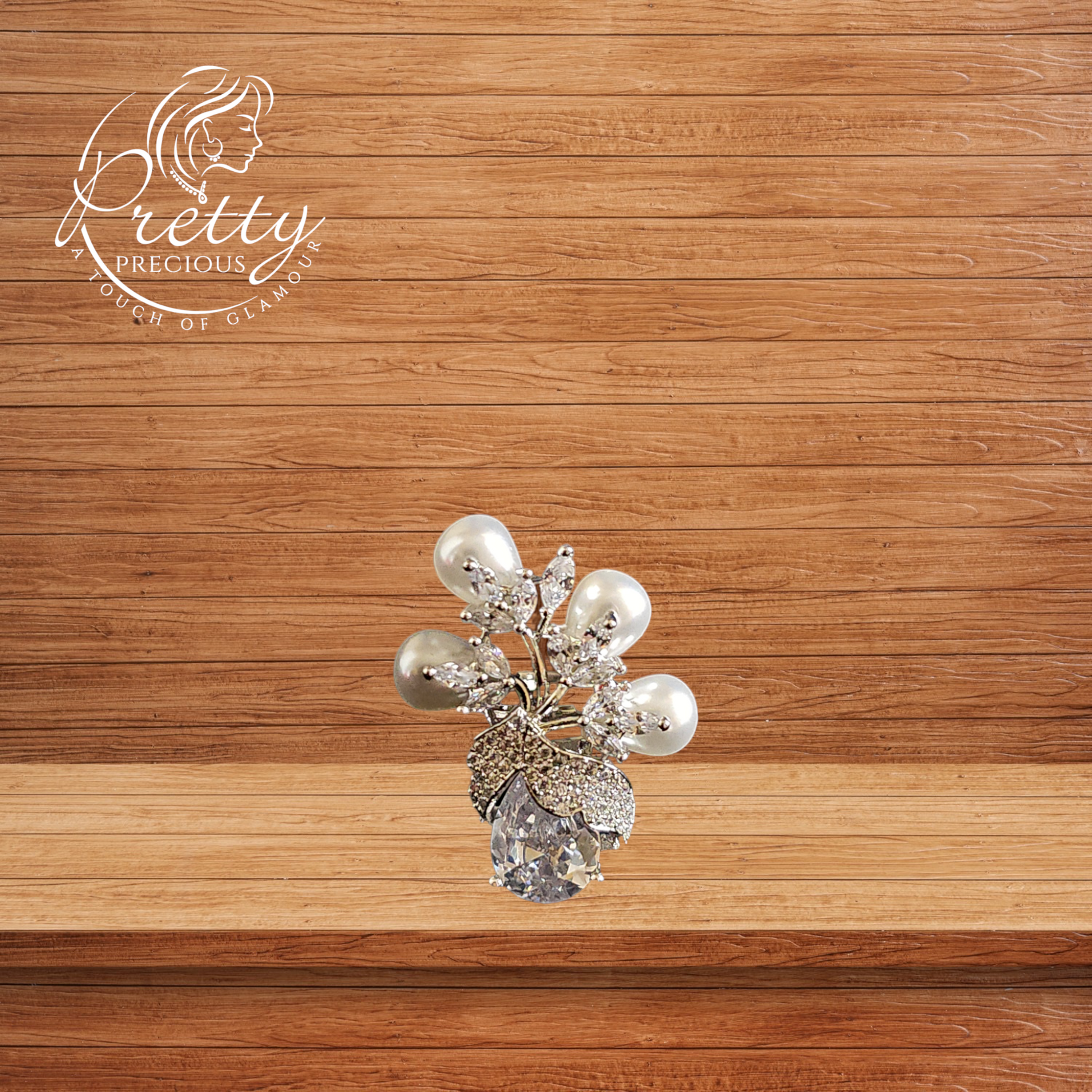 422887 Cubic Zirconia Pearl Ring With Rhodium Plating