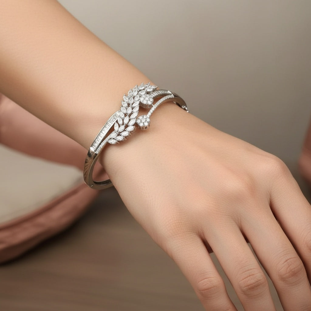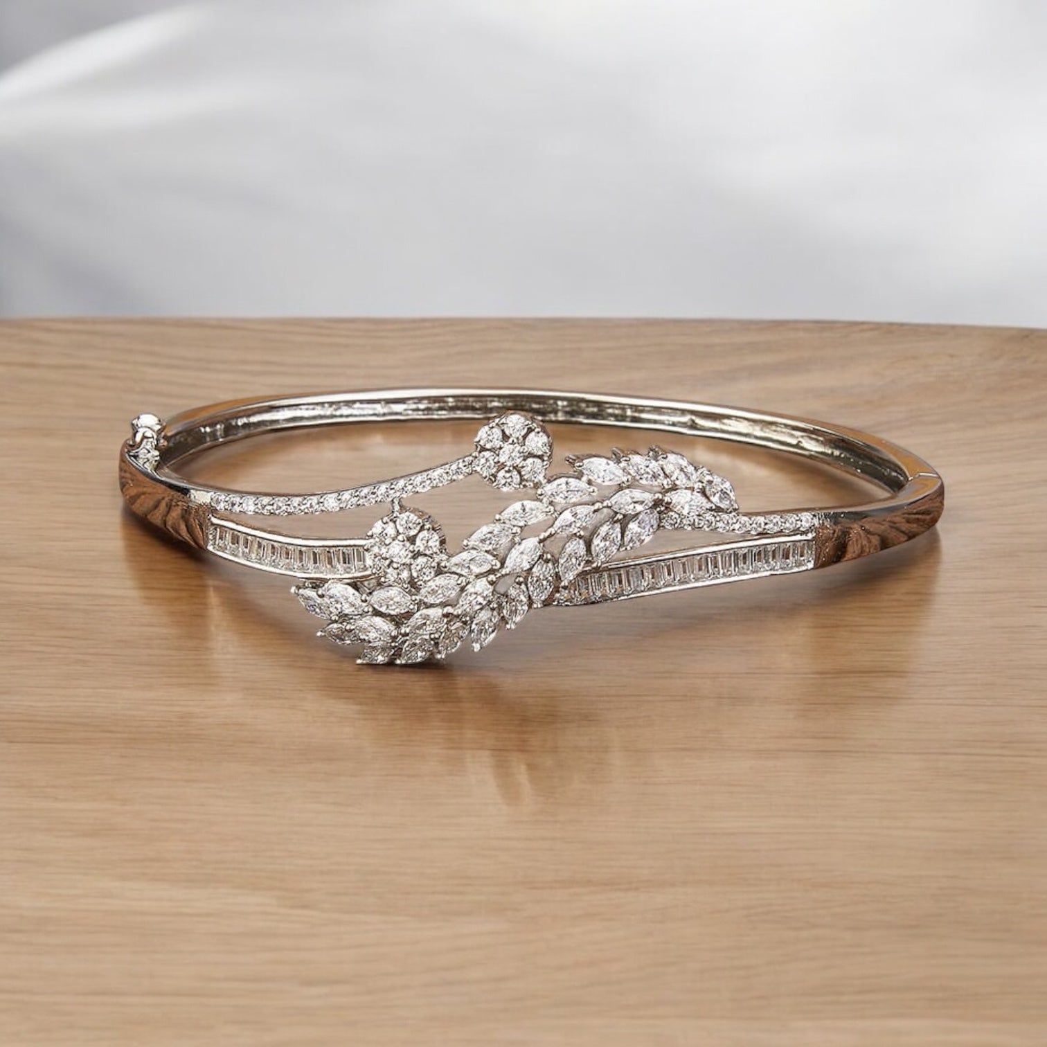 423601 Cubic Zirconia Classic Kada With Rhodium Plating-White