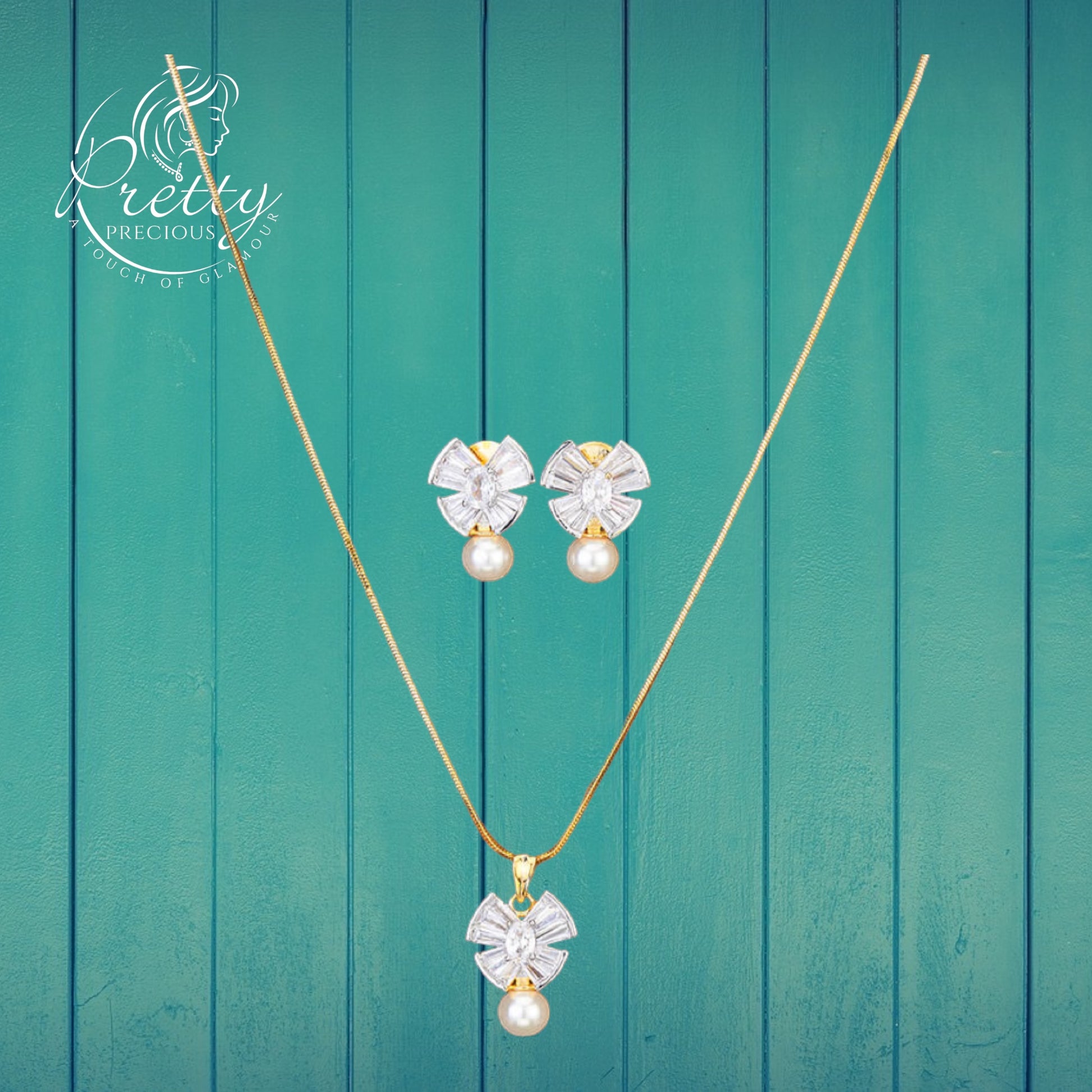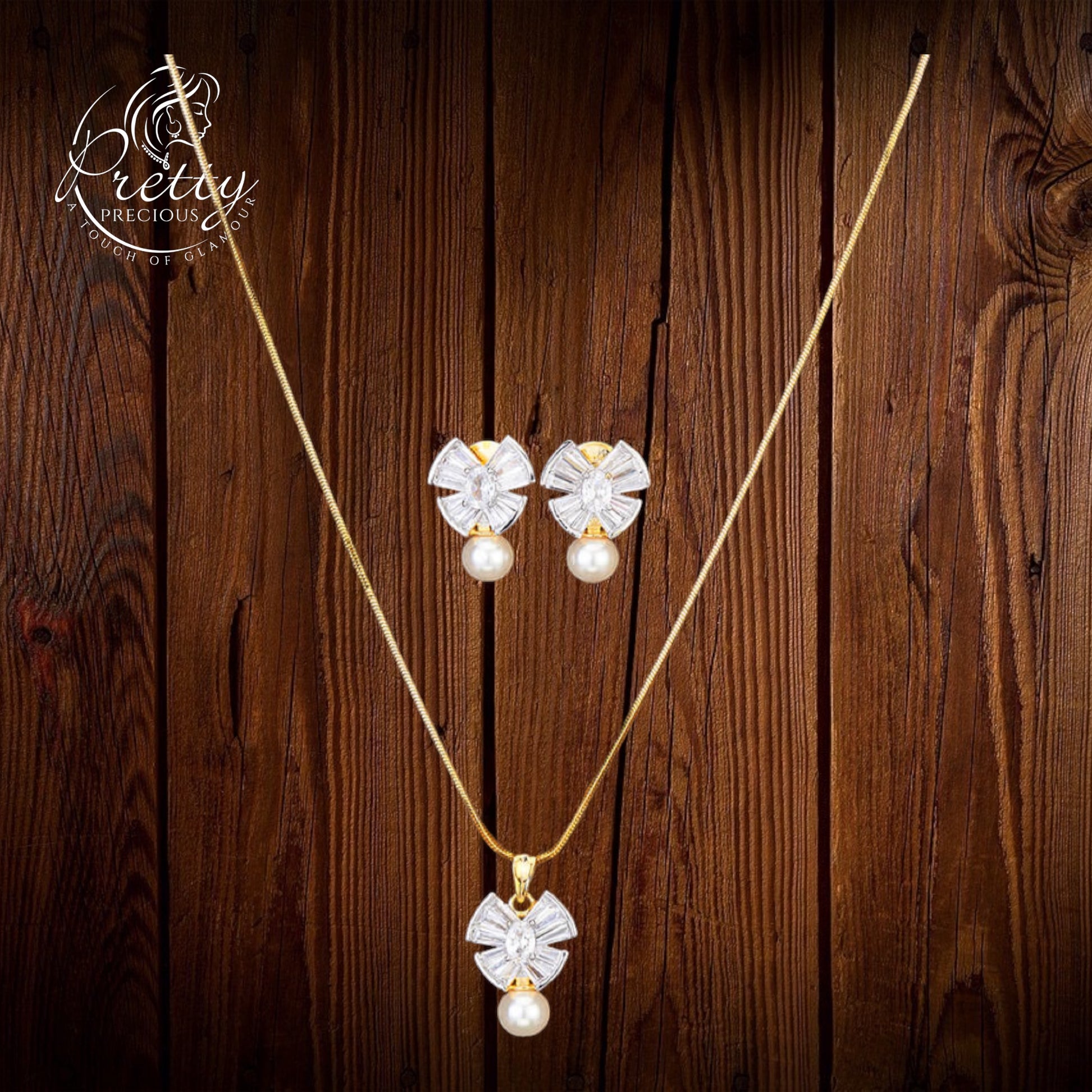 424749 Cubic Zirconia Classic Pendant Set With 2 Tone Plating-White