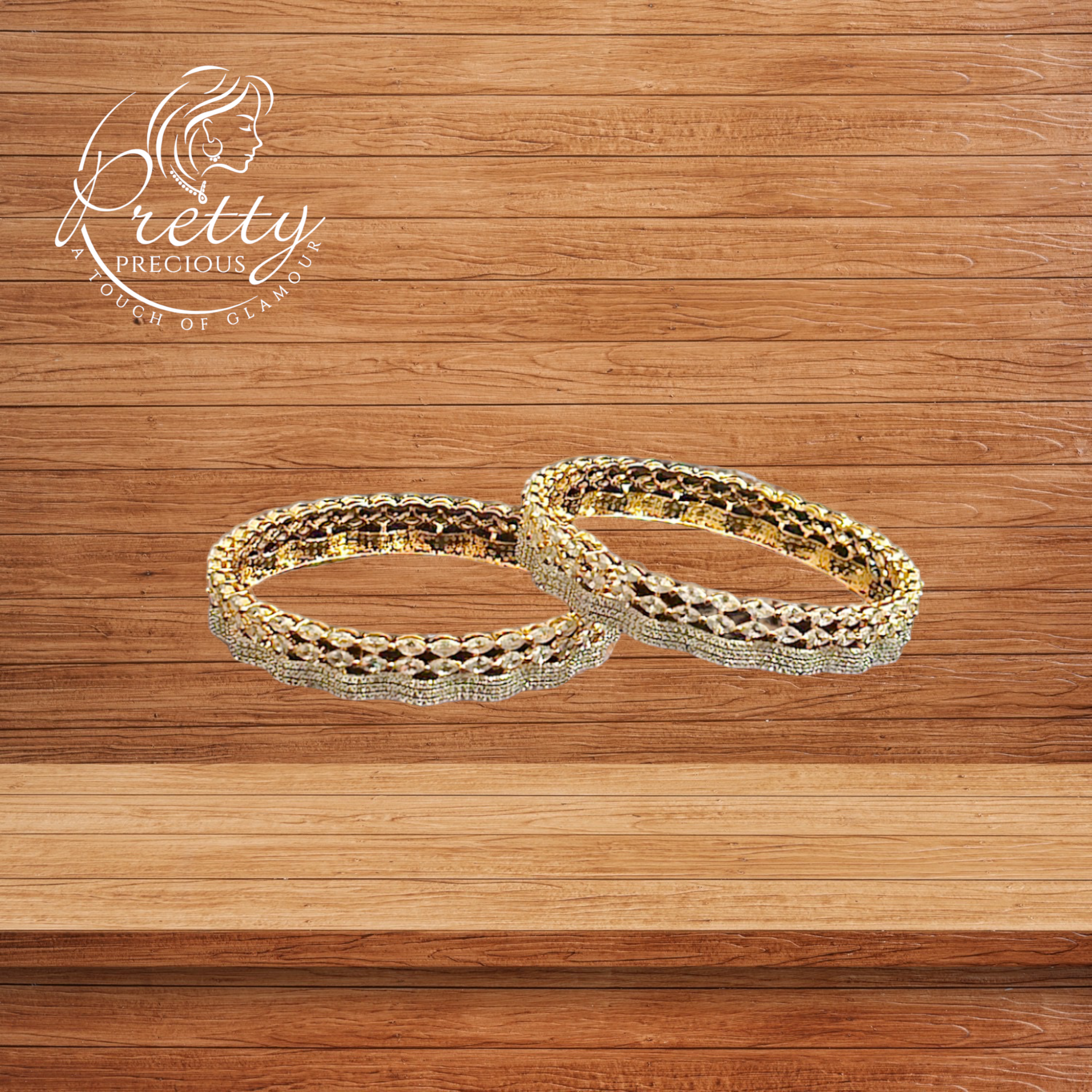 425490 Cz Classic Bangles With 2 Tone Plating-Size 2.4