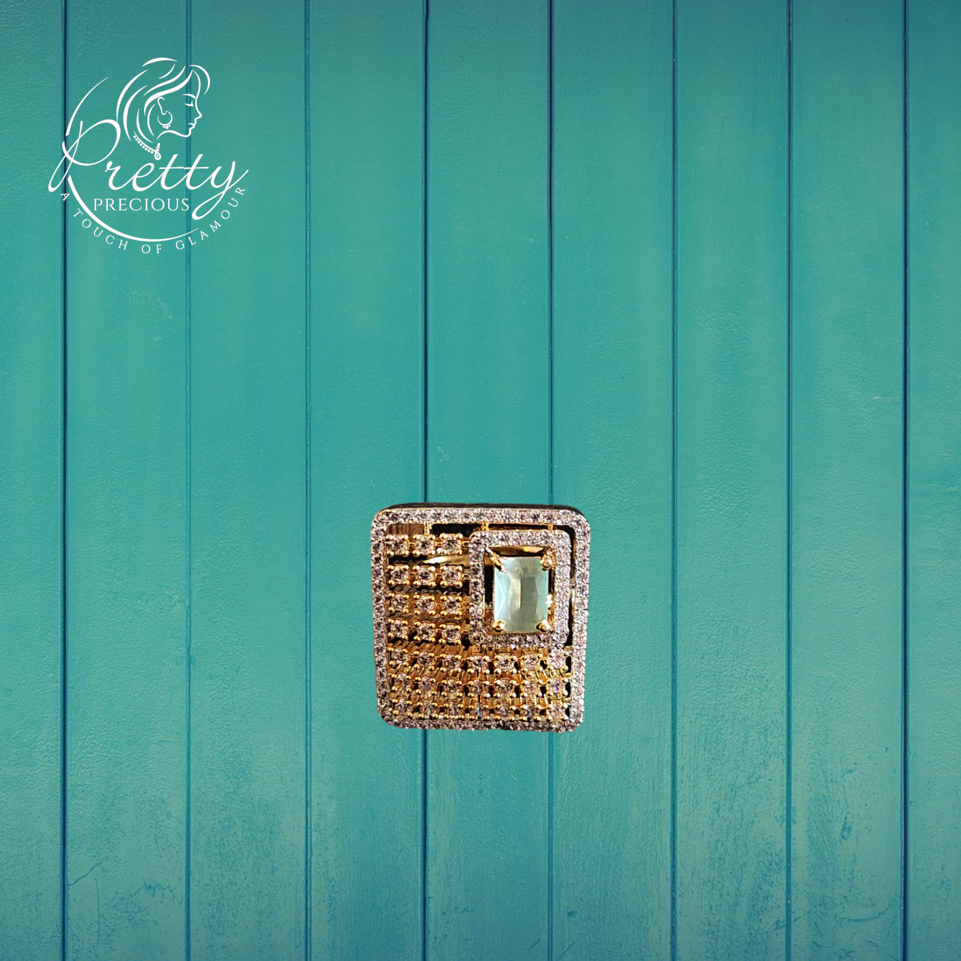 425721 Cubic Zirconia Adjustable Ring With 2 Tone Plating