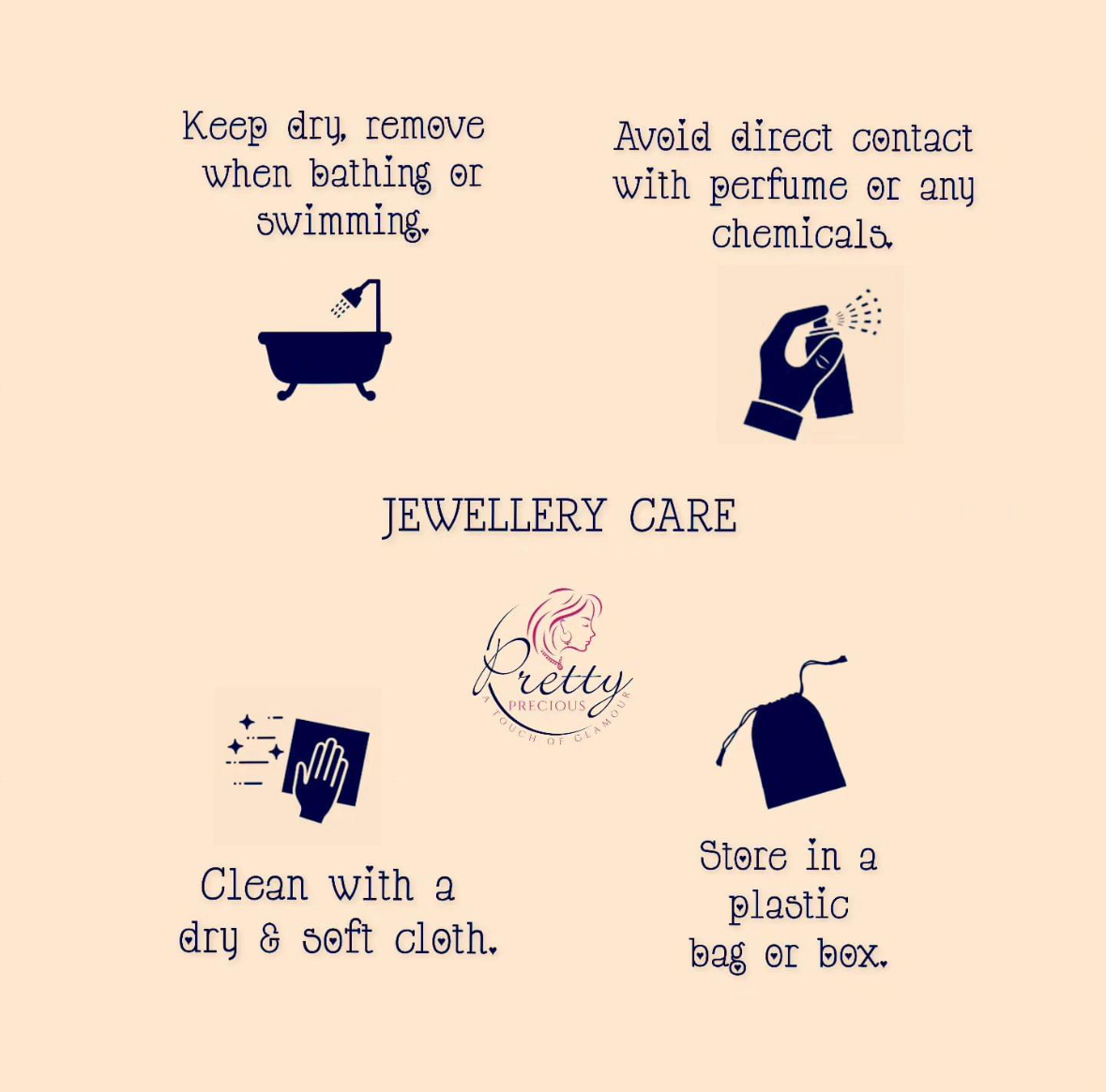 - Care for your jewellery: To ensure its longevity, store this piece in an air-tight pouch. Avoid contact with water, perfume, and other chemicals to maintain its pristine condition. After each use, gently wipe it with a soft cloth for proper care.