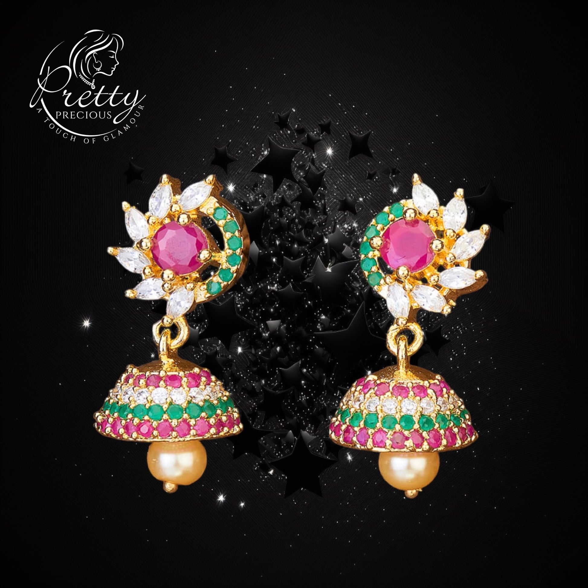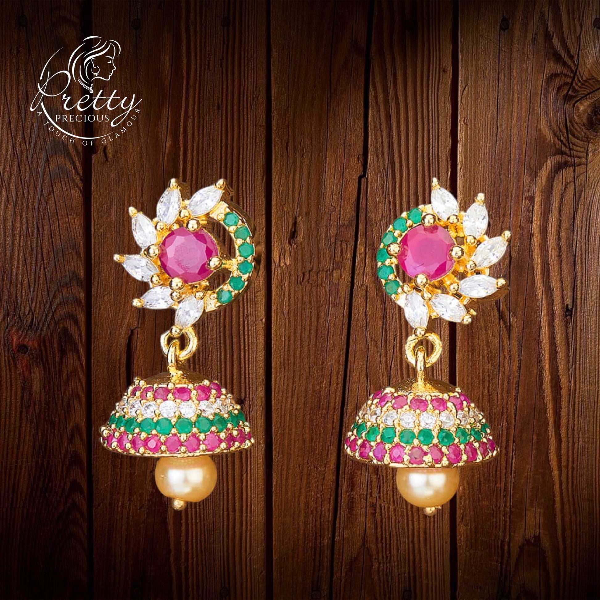 426541 Cubic Zirconia Delicate Jhumki With Gold Plating