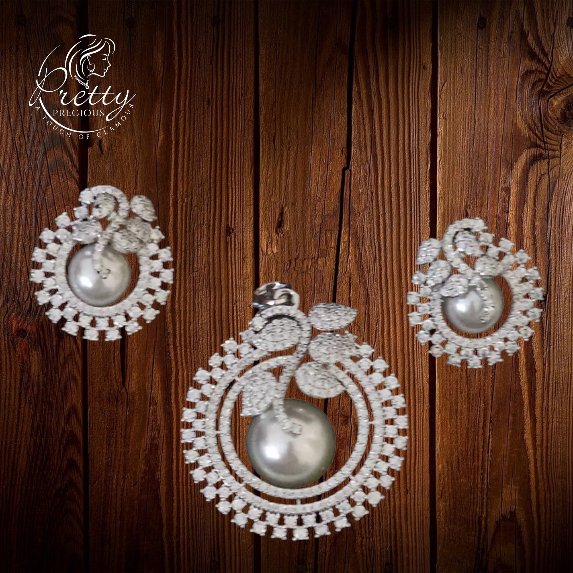 426781 Cz Moti Pendant Set With Rhodium Plating