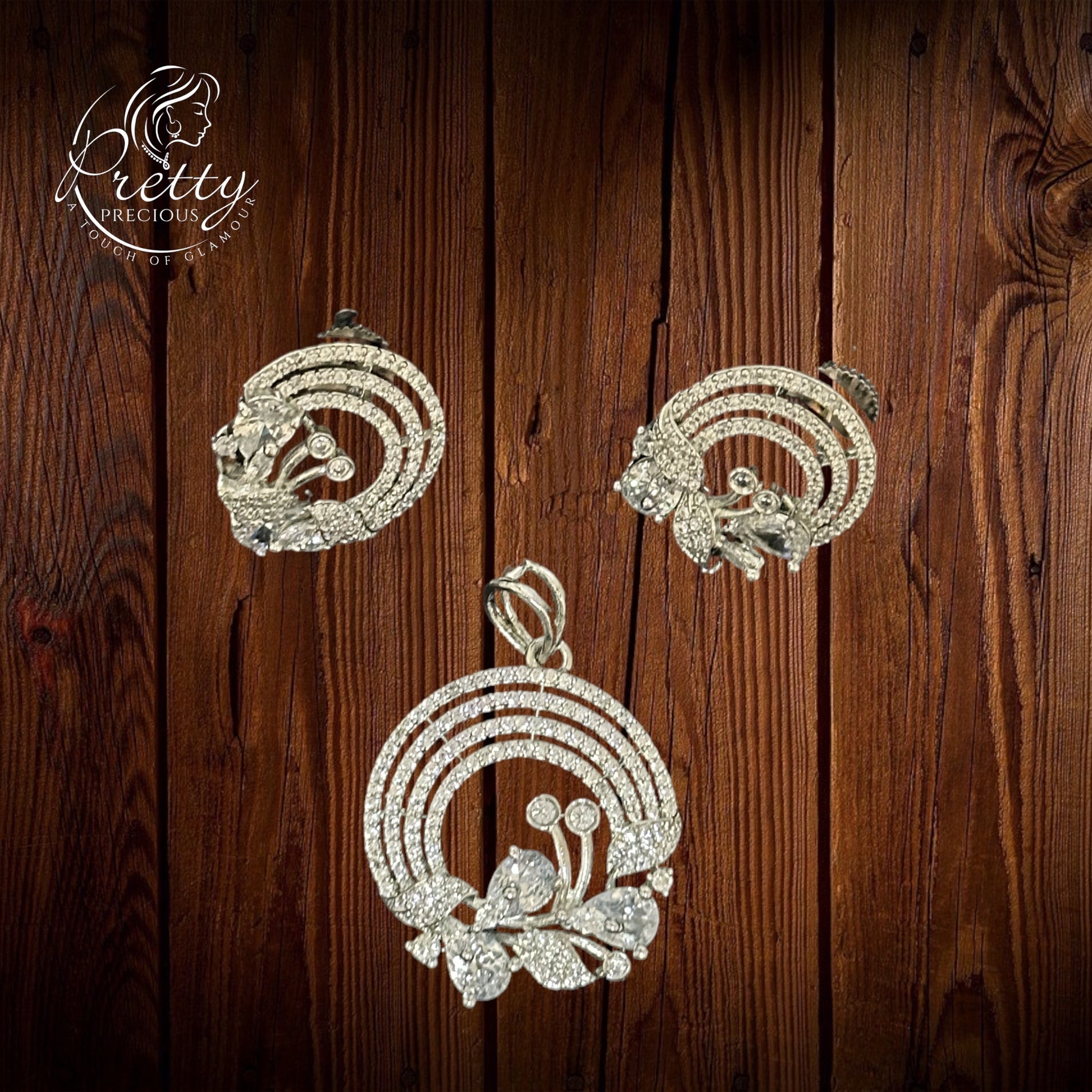 426970 American Diamond Delicate Pendant Set With Rhodium Plating-Silver