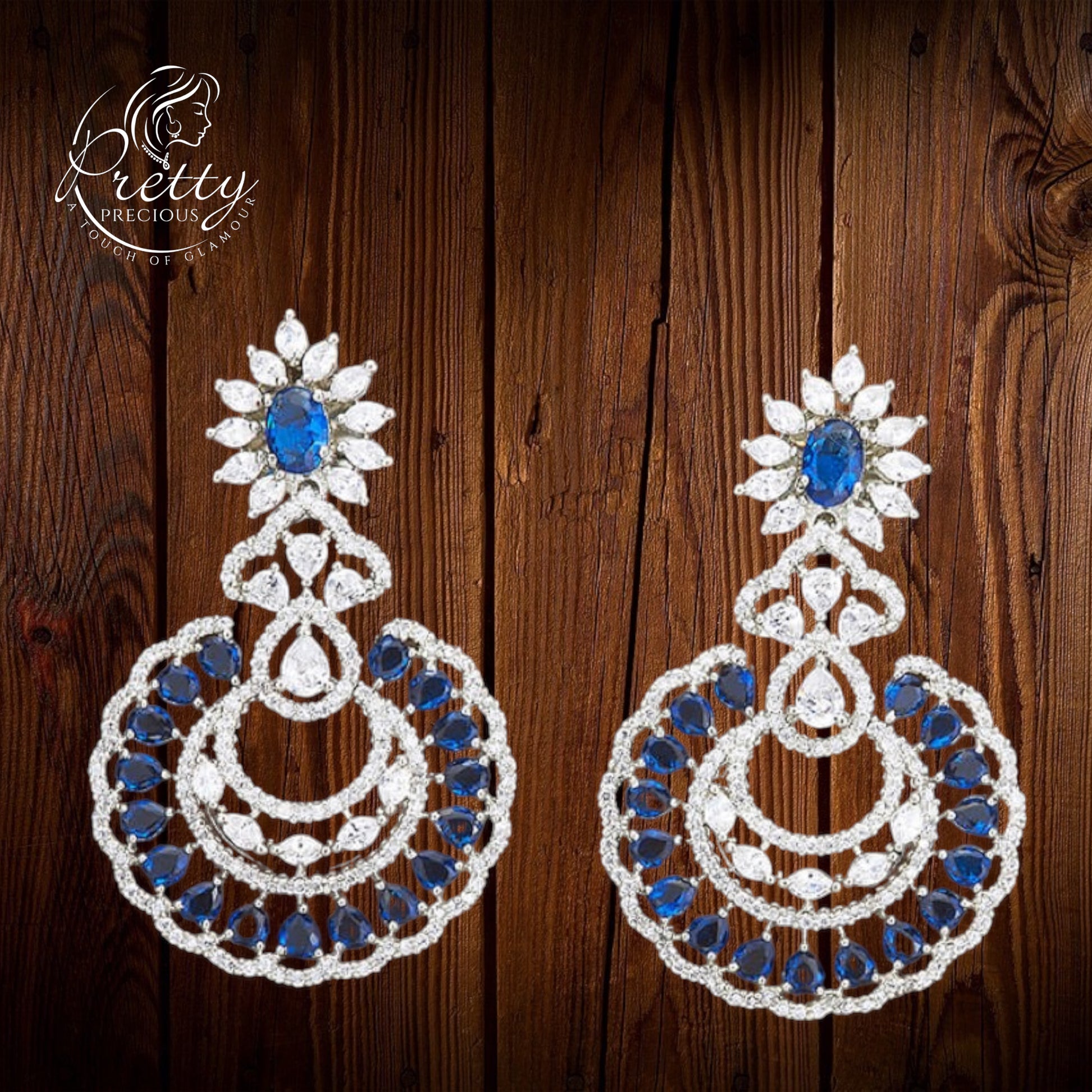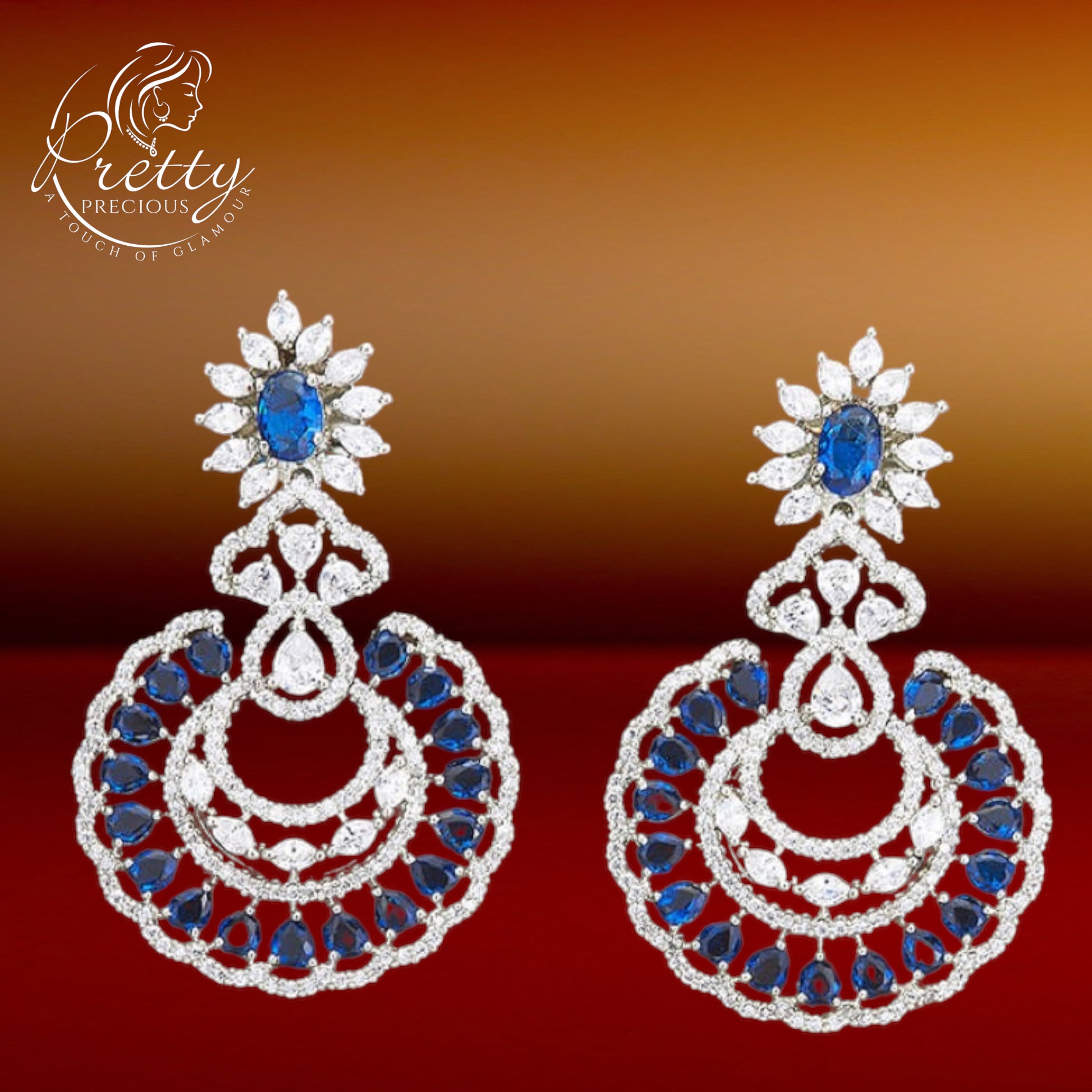 427108 Cz Short Earring With Rhodium Plating-Blue
