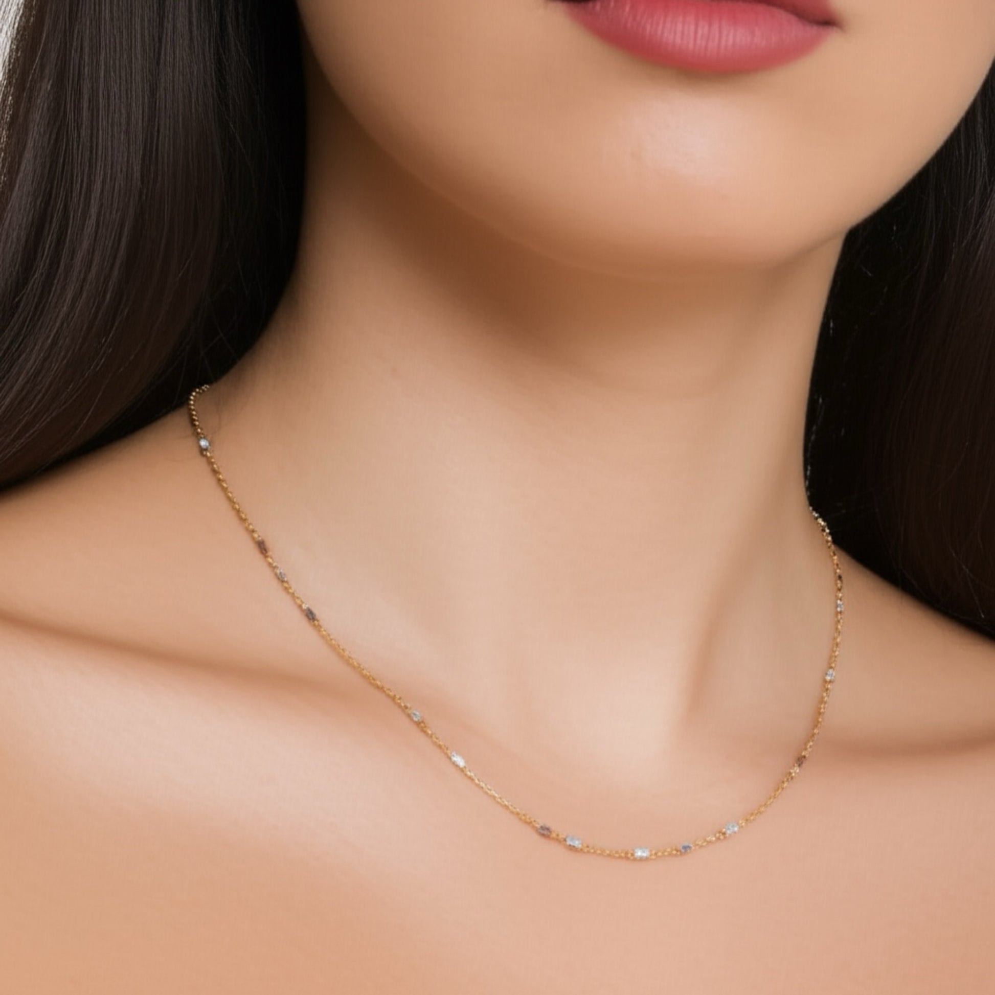 427469 Cubic Zirconia Delicate Chain With Rhodium Gold Plating