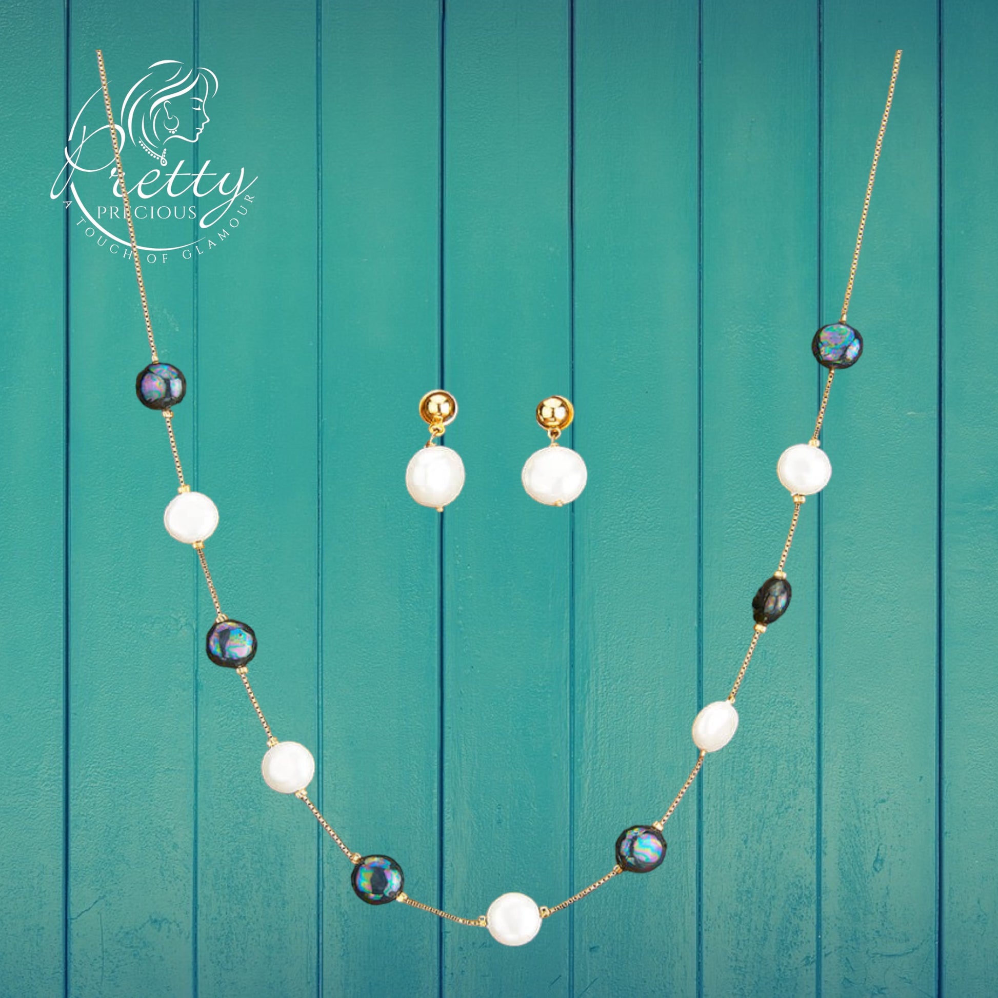 429805 American Diamond Delicate Mala With Gold Plating-Blackwhite