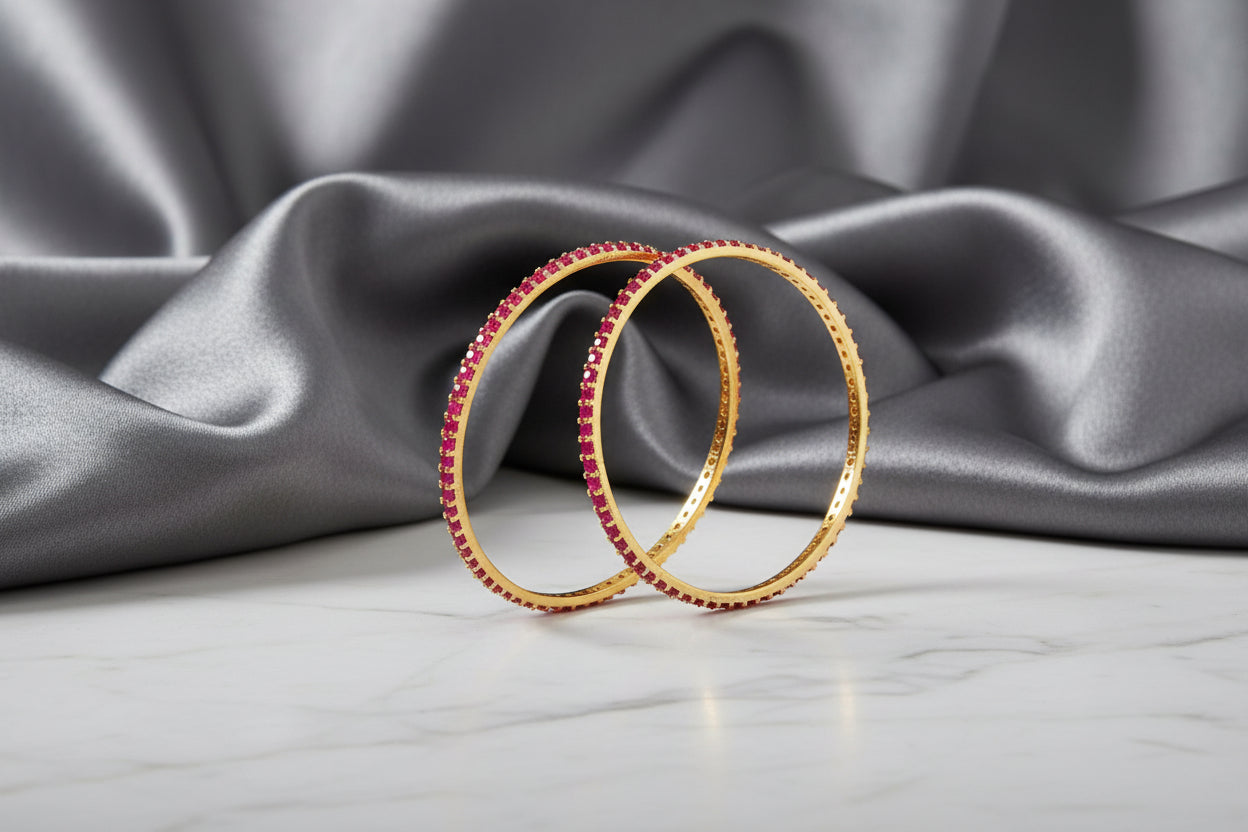 431232-Pretty Precious Gold Plated Cubic Zirconia/American Diamond Traditional Bangles/Bracelet Set of 2 for Women and Girls- Ruby (Size 2.8)