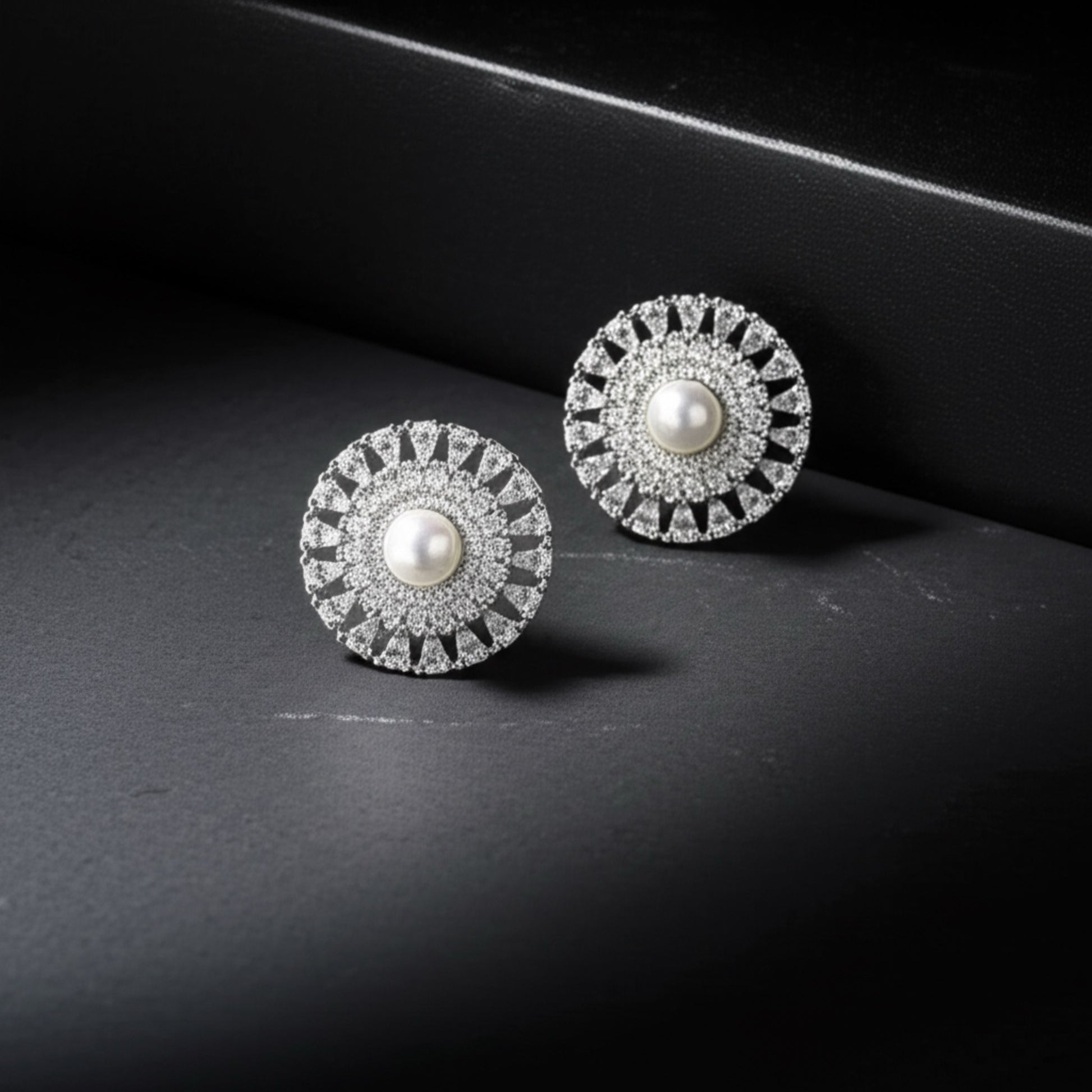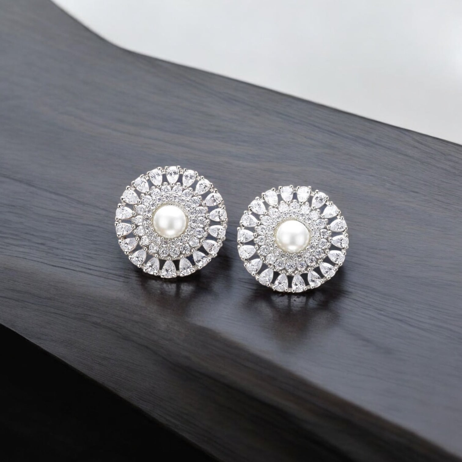431823 Cz Pearl Tops With Rhodium 2 Tone Plating