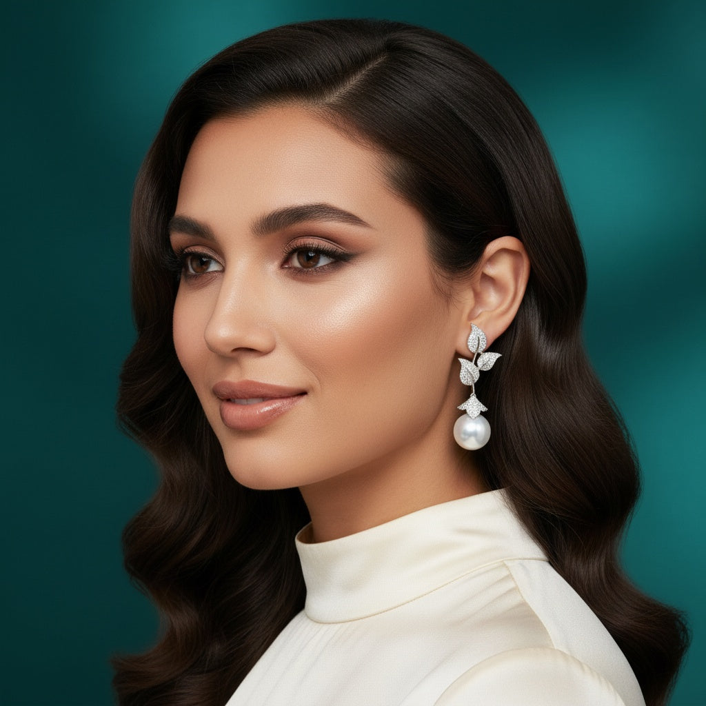 434633 Cz Moti Earring With 2 Tone Rhodium Plating-Silver