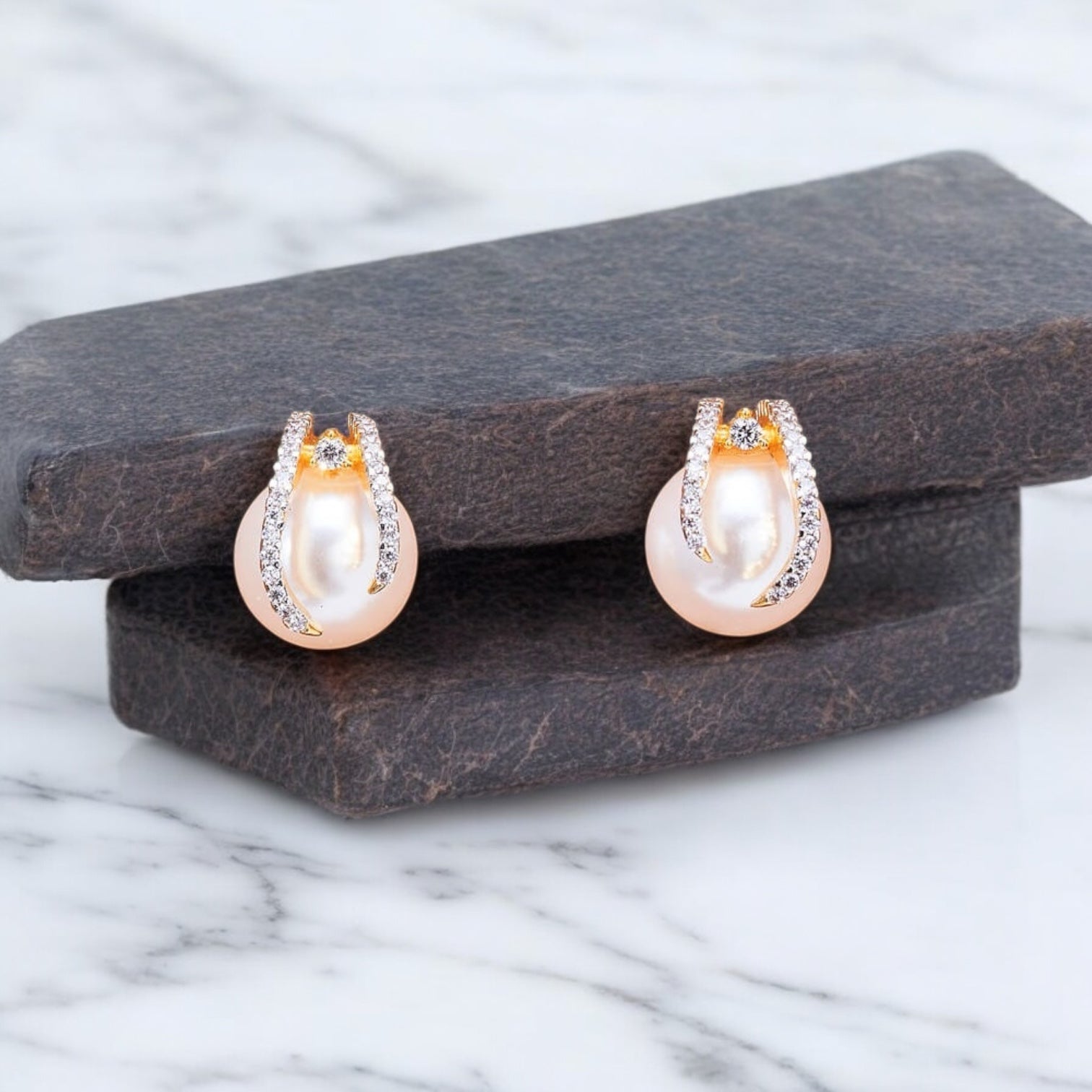 435168 Cubic Zirconia Pearl Earring With 2 Tone Rhodium Plating