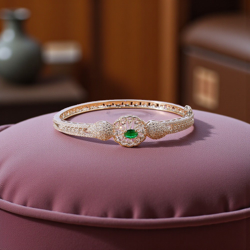 435189 Cubic Zirconia Delicate Kada With Rhodium Plating-Green