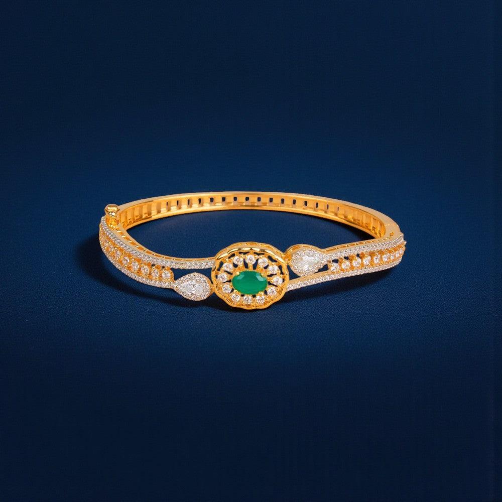 436212 Cubic Zirconia Openable Kada With 2 Tone Plating-Green
