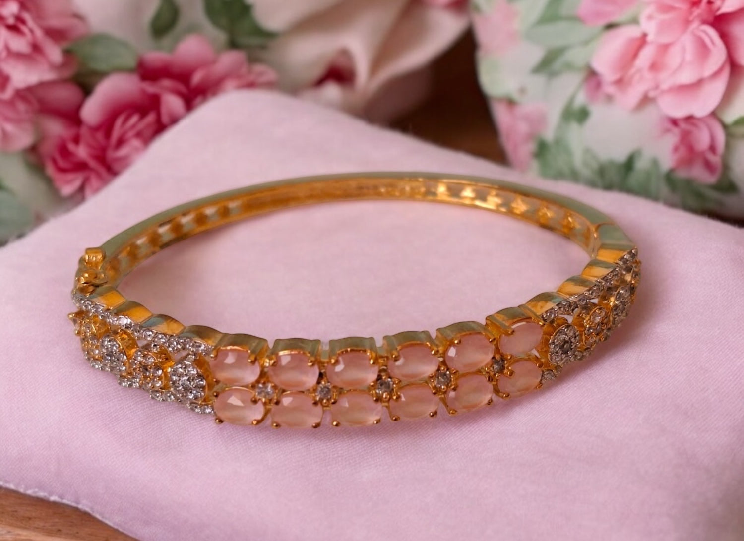 436214 Cubic Zirconia Classic Kada With Gold Plating-Pink