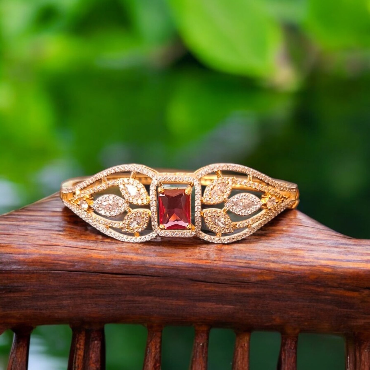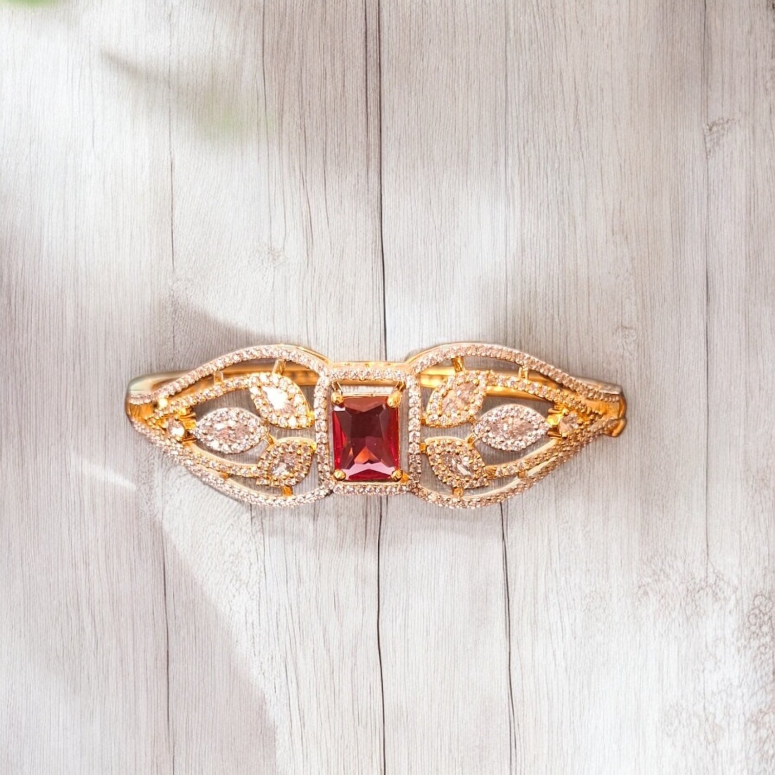 436856 Cubic Zirconia Classic Kada With Gold Plating-Ruby