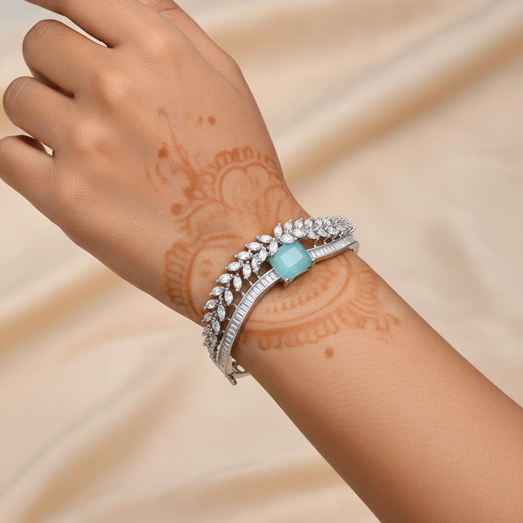 437861 Cz Classic Kada With Rhodium Plating-Aqua