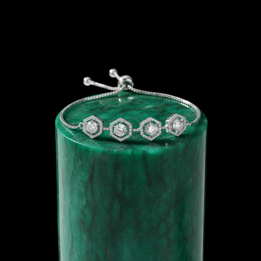 438334 Cz Adjustable Bracelet With 2 Tone Rhodium Plating-Silver