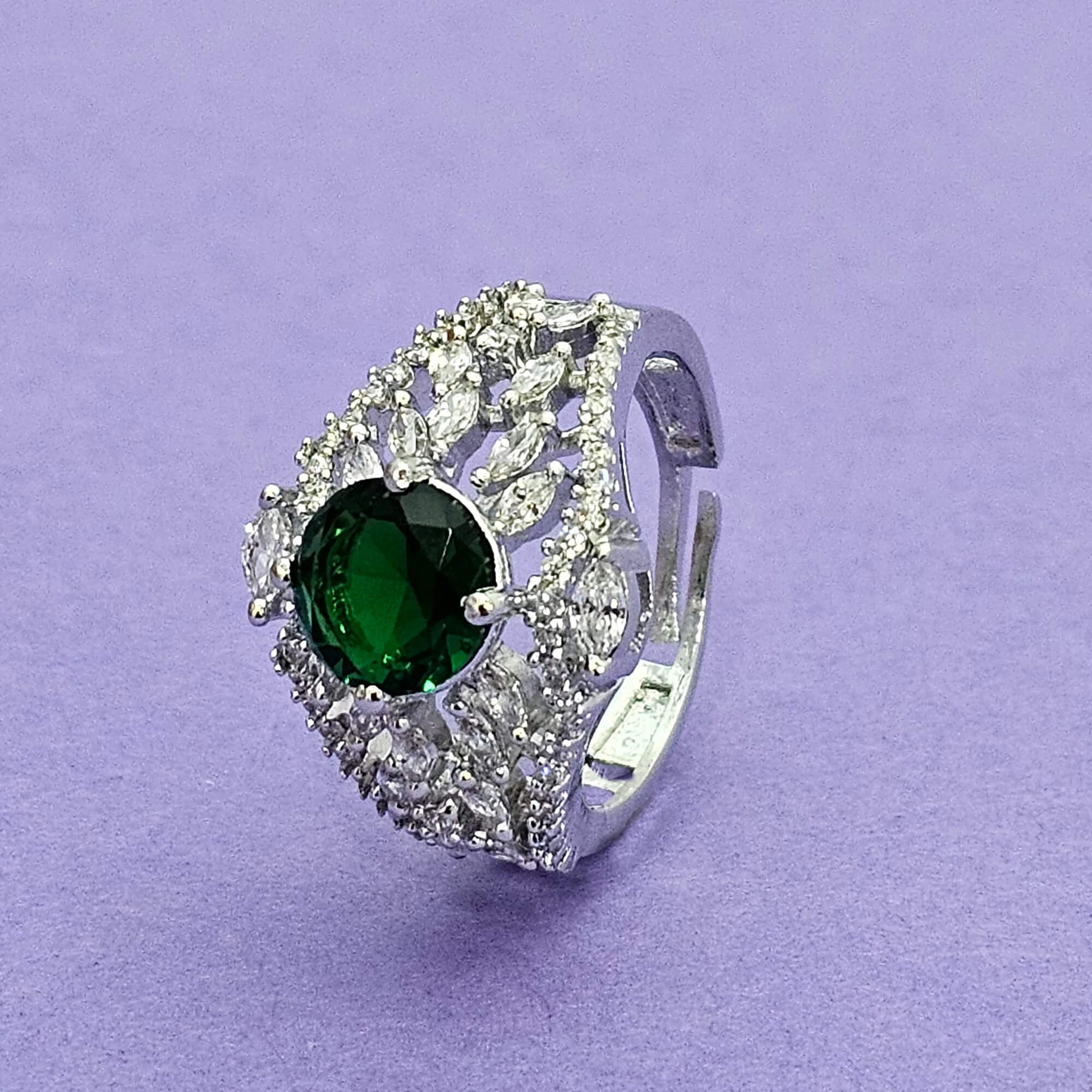 438575 Cz Classic Ring With Rhodium Plating-Green