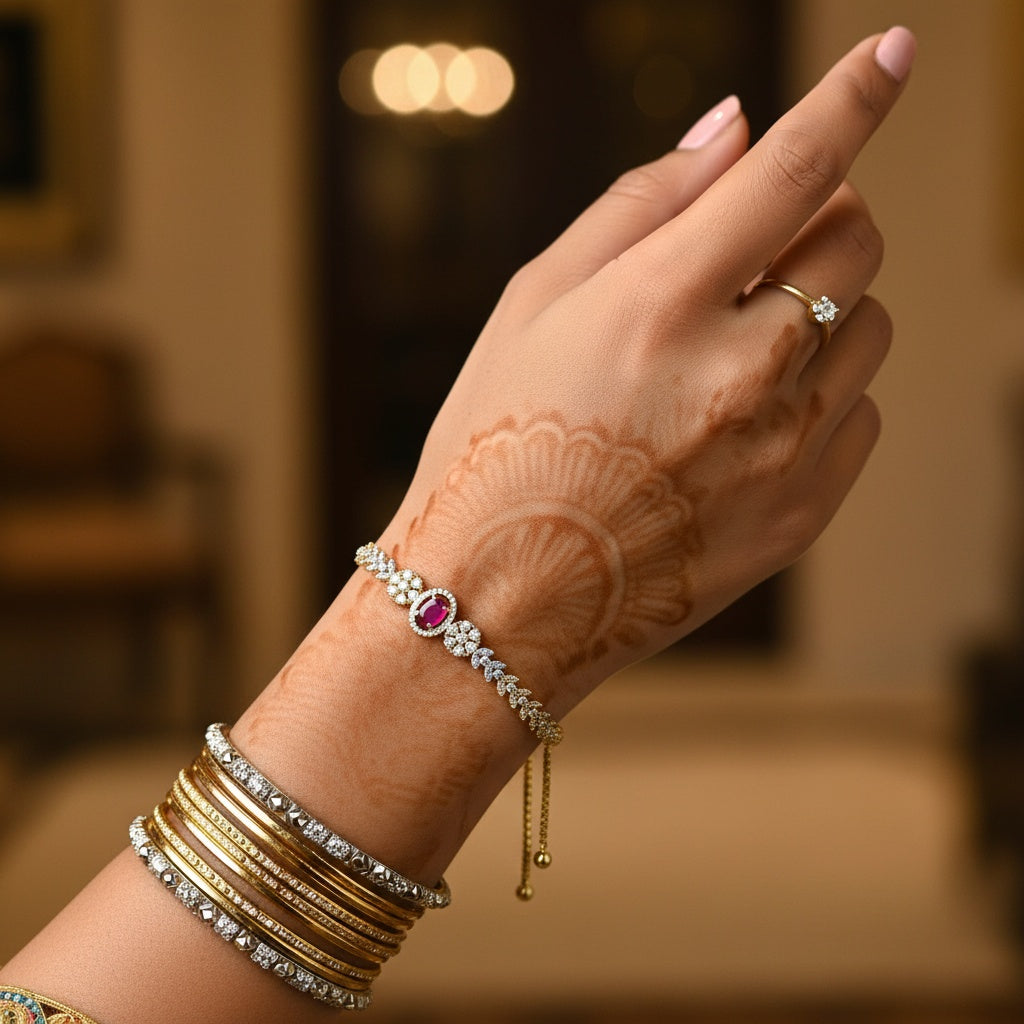 439543 Cubic Zirconia Adjustable Bracelet With 2 Tone Plating-Ruby
