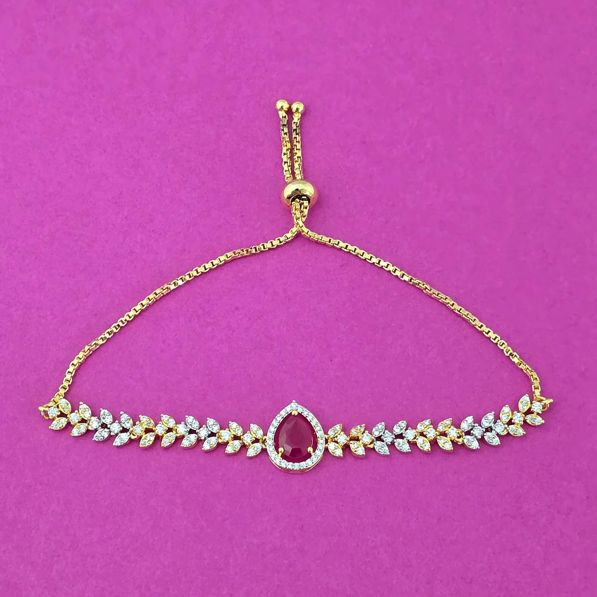 439544 Cubic Zirconia Adjustable Bracelet With 2 Tone Plating-Ruby