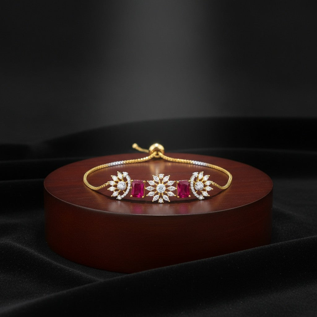 439707 Cubic Zirconia Adjustable Bracelet With 2 Tone Plating-Ruby