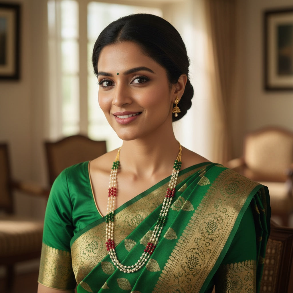 439848 Cubic Zirconia Mala Necklace With Gold Plating-Rubygreen