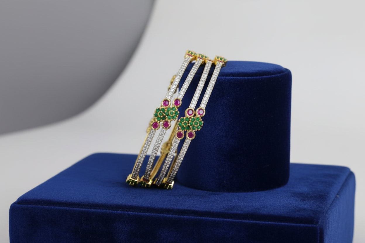 441852-Pretty Precious Gold Plated Cubic Zirconia/American Diamond Traditional Bangles/Bracelet Set of 4 for Women and Girls- Ruby Green (Size 2.6)