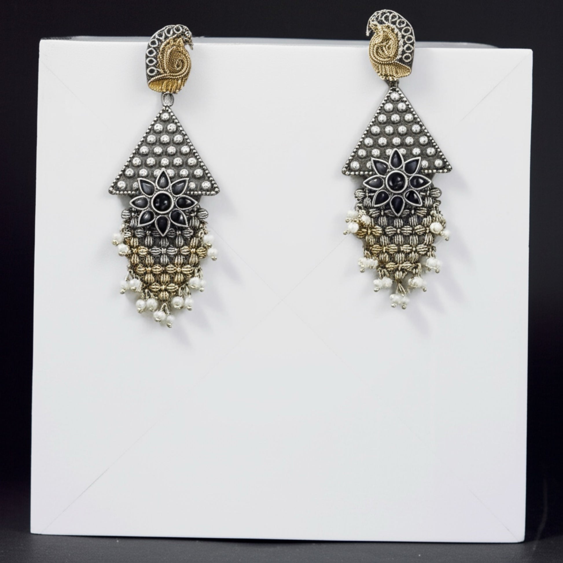 803600 Oxidised Peacock Earring With 2 Tone Plating-Black