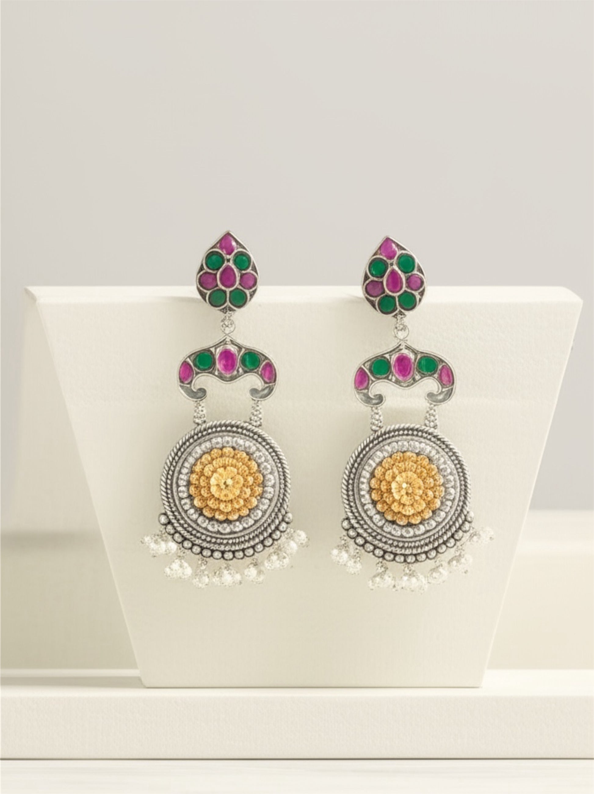 804551 Oxidised Classic Earring With 2 Tone Plating-Multi