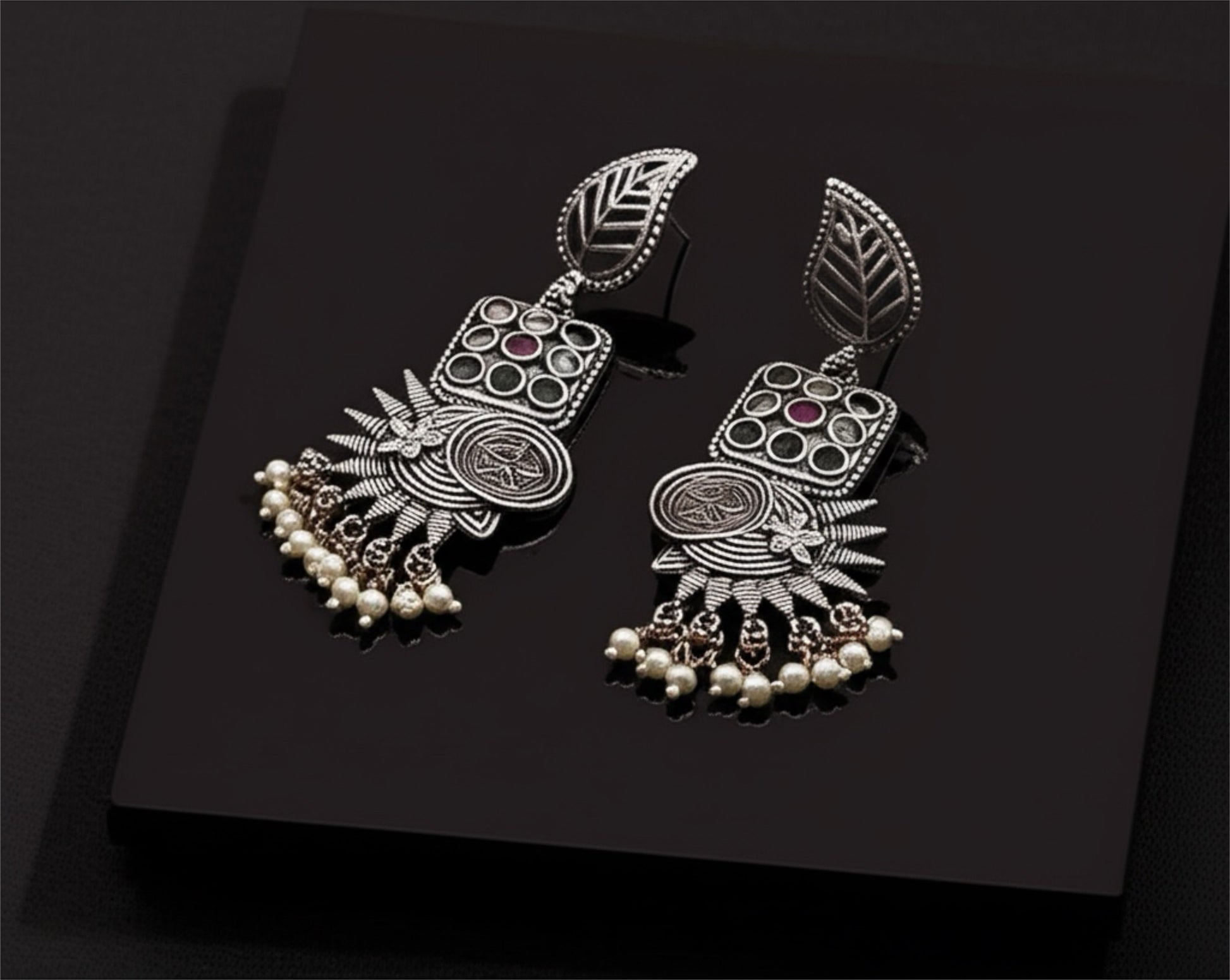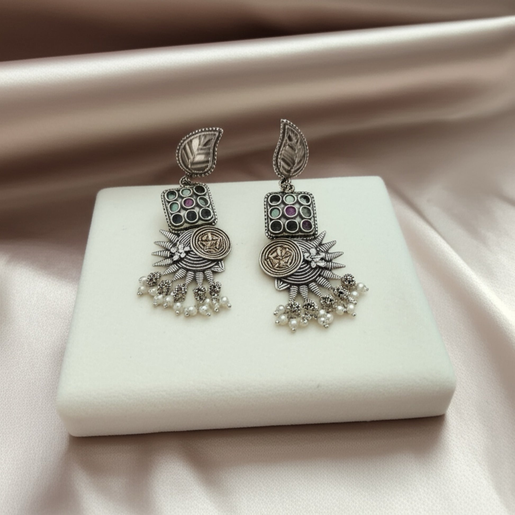 806461 Oxidised German Silver Earring With 2 Tone Plating