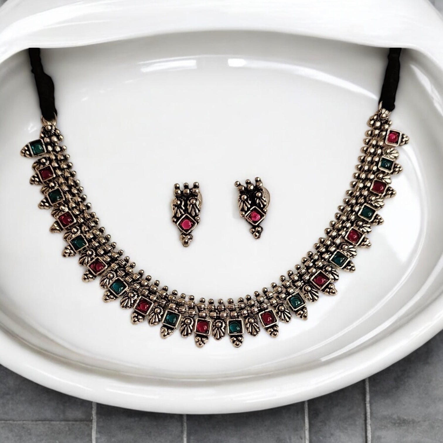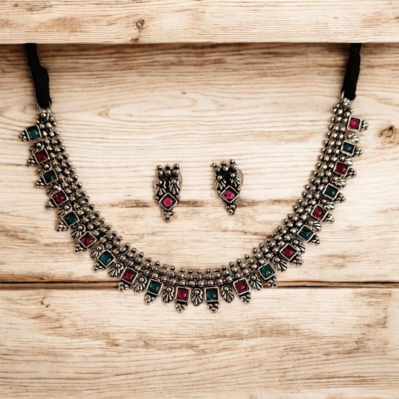 808884 Classic Necklace With Oxidised Plating-Rubygreen