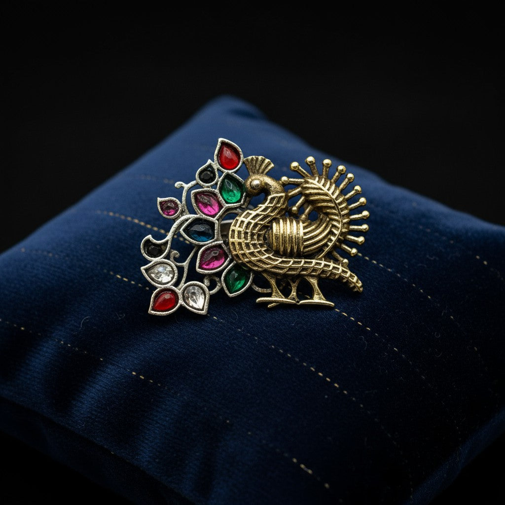 809590 Oxidised Adjustable Ring With 2 Tone Plating