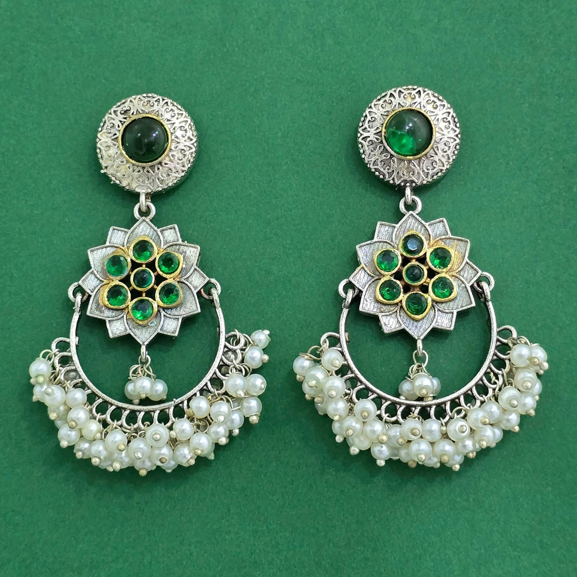 809603 Oxidised Classic Earring With 2 Tone Plating-Green
