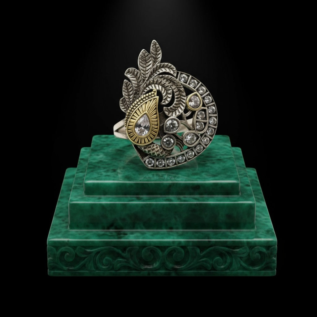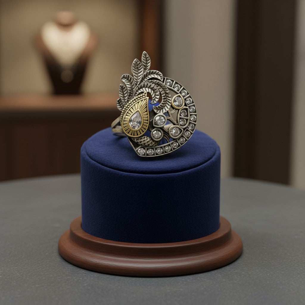 809630 Oxidised Adjustable Ring With 2 Tone Plating-White