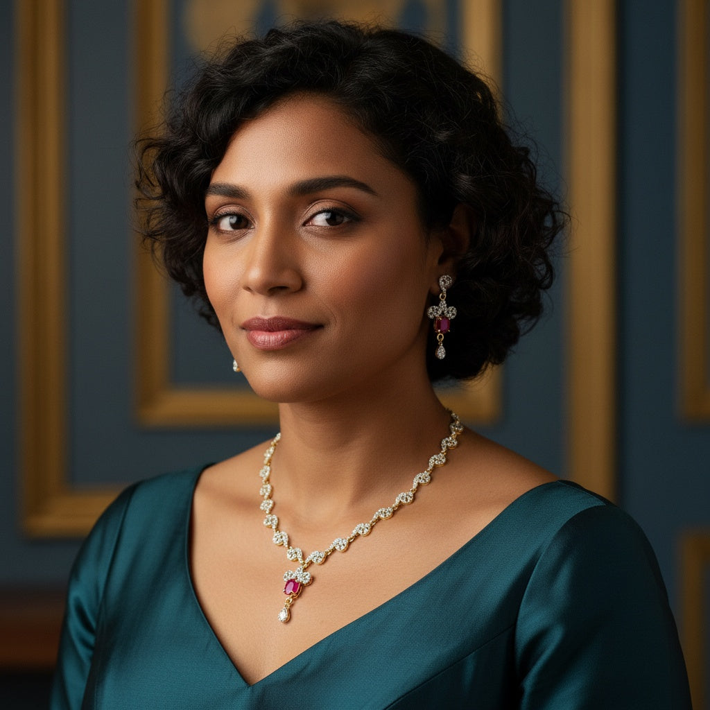 912009 Cz Delicate Necklace With 2 Tone Plating-Ruby