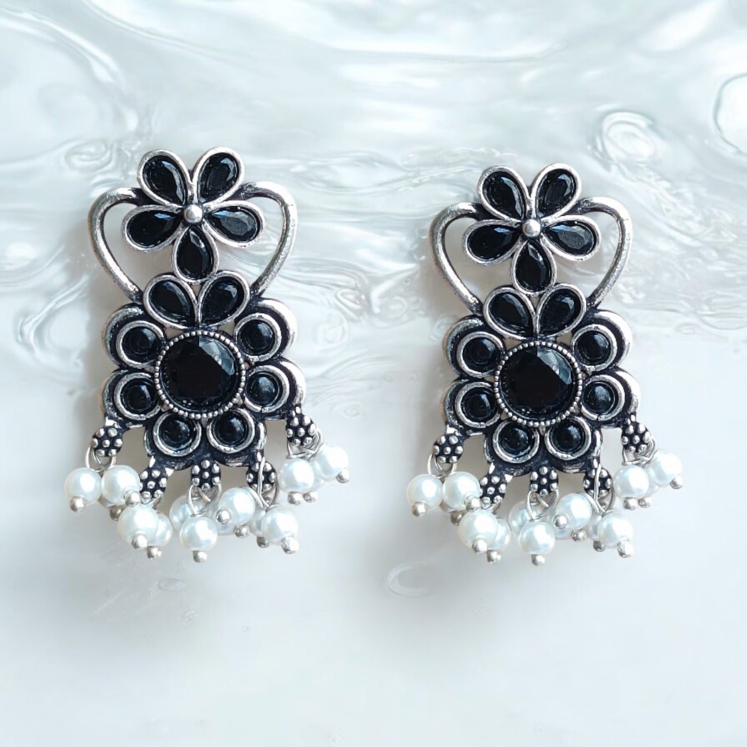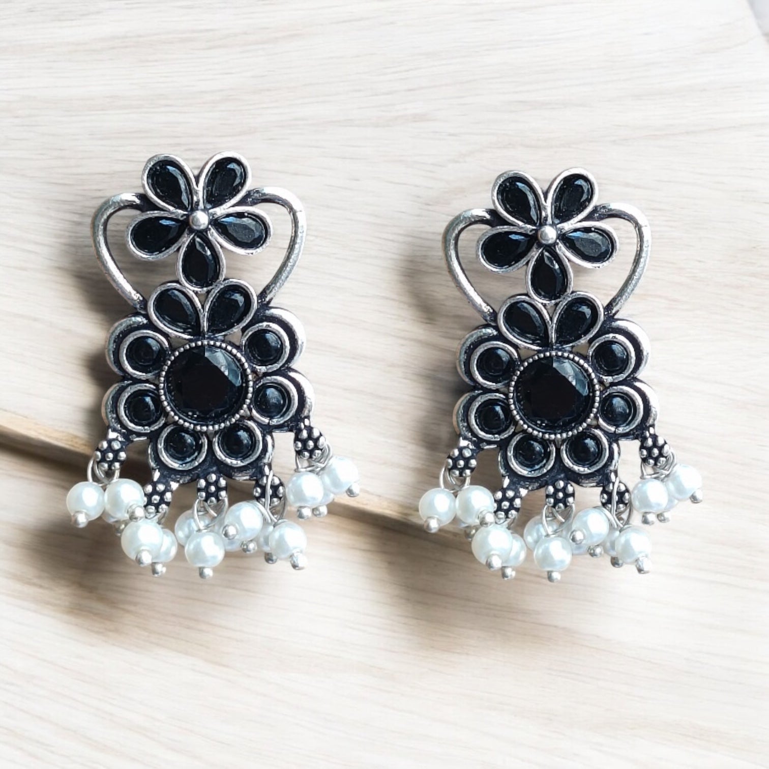91999-ERO Pretty Precious Fashion Oxidised Silver Stylish Party Wear Earrings for Women and Girls-Black