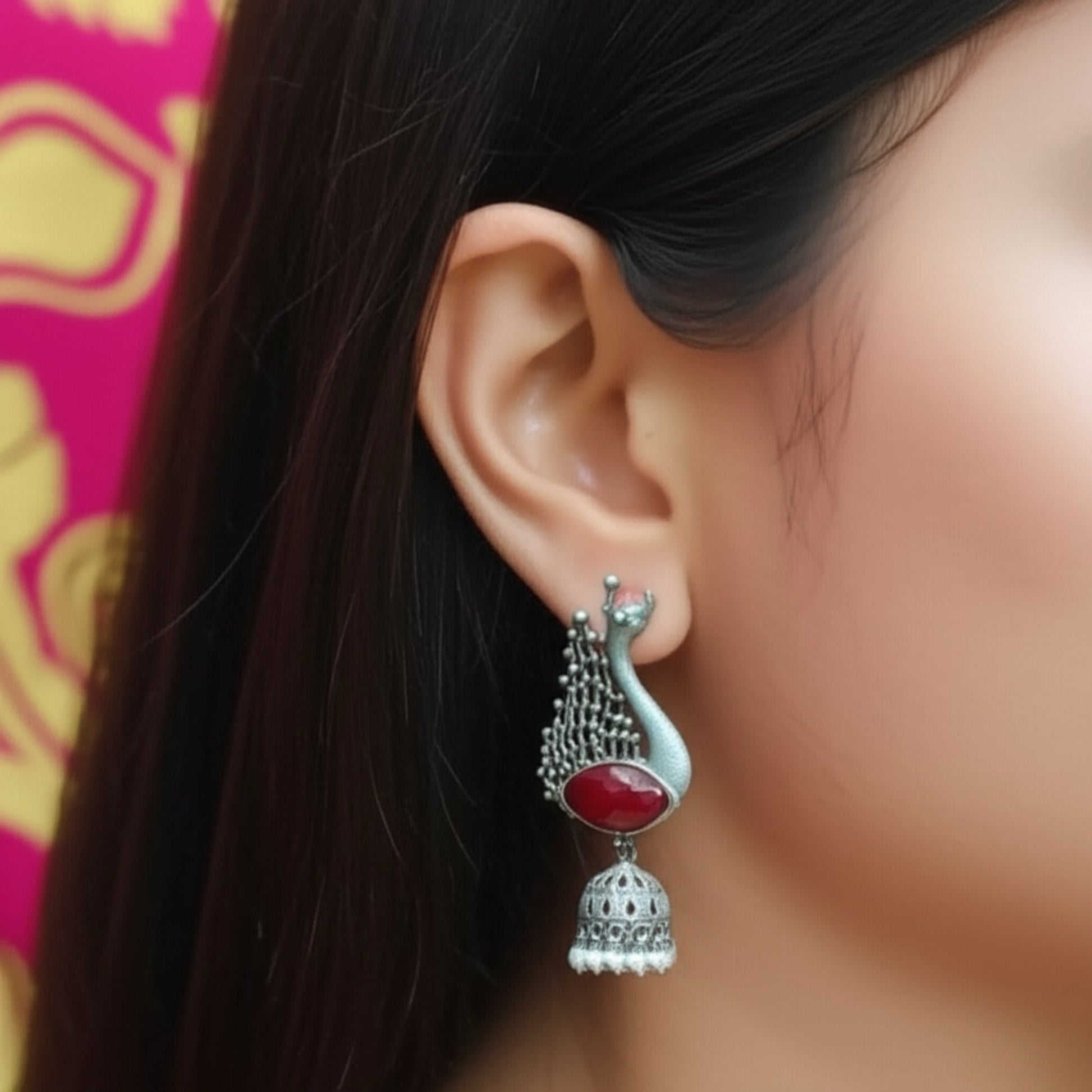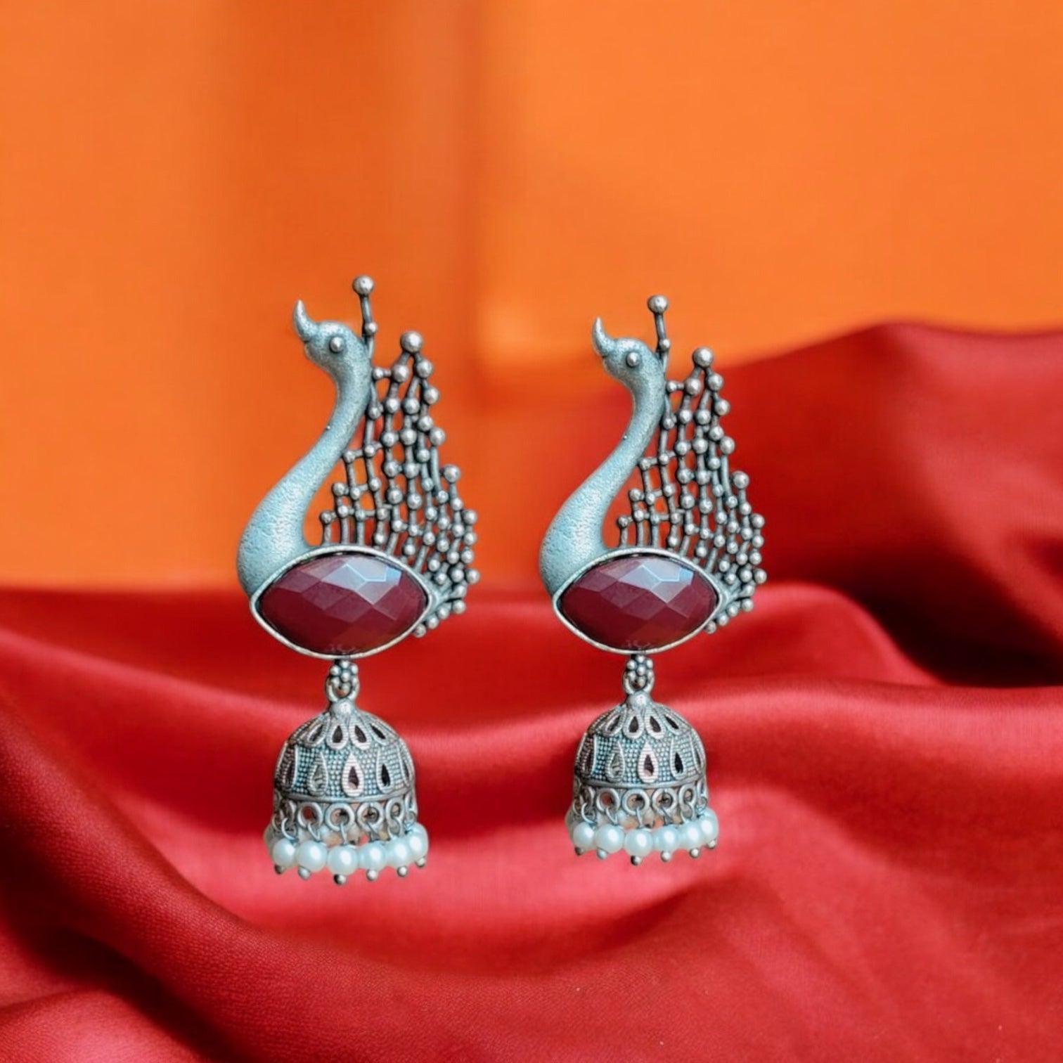 92209-ERO Pretty Precious Fashion Oxidised Silver Stylish Party Wear Earrings for Women and Girls-Ruby