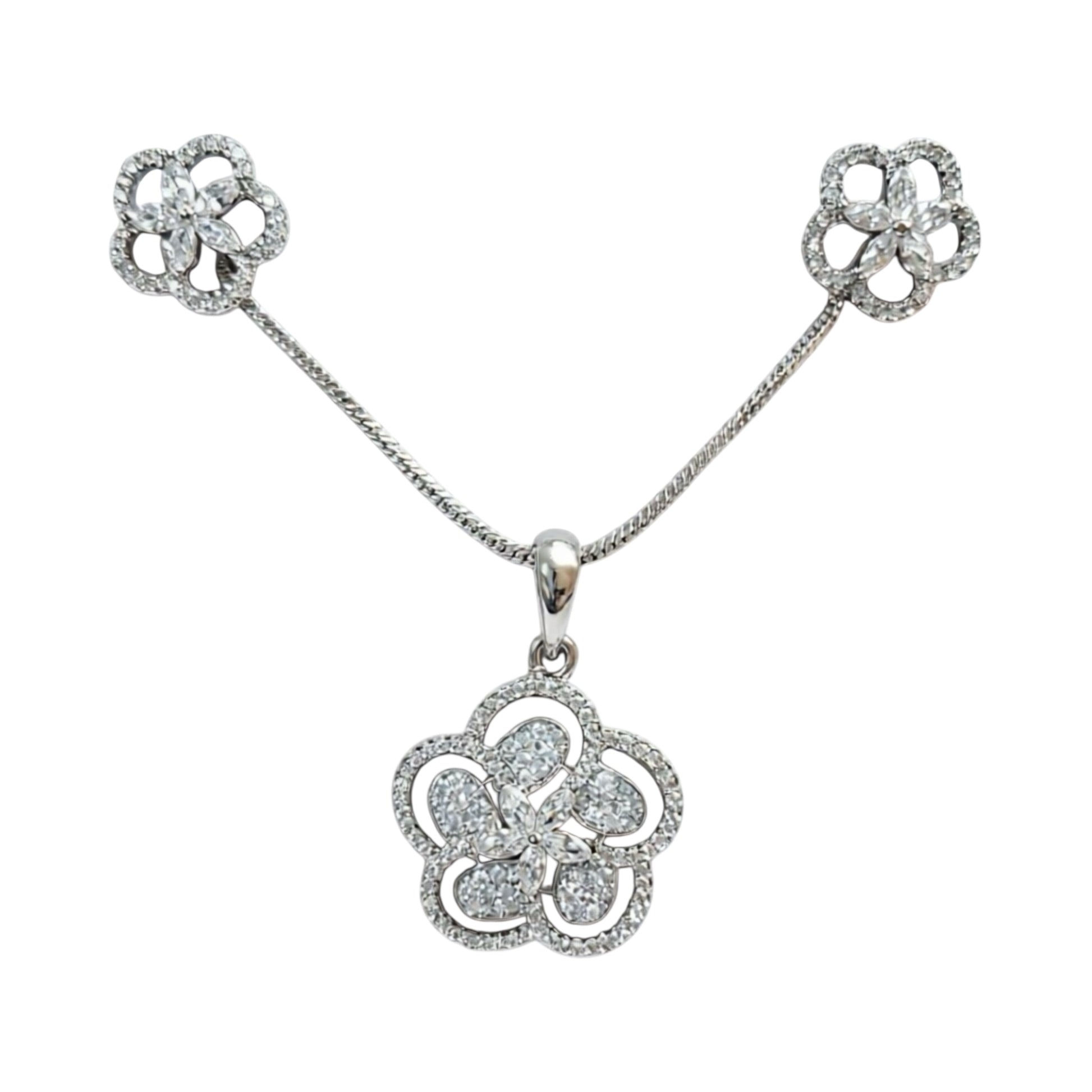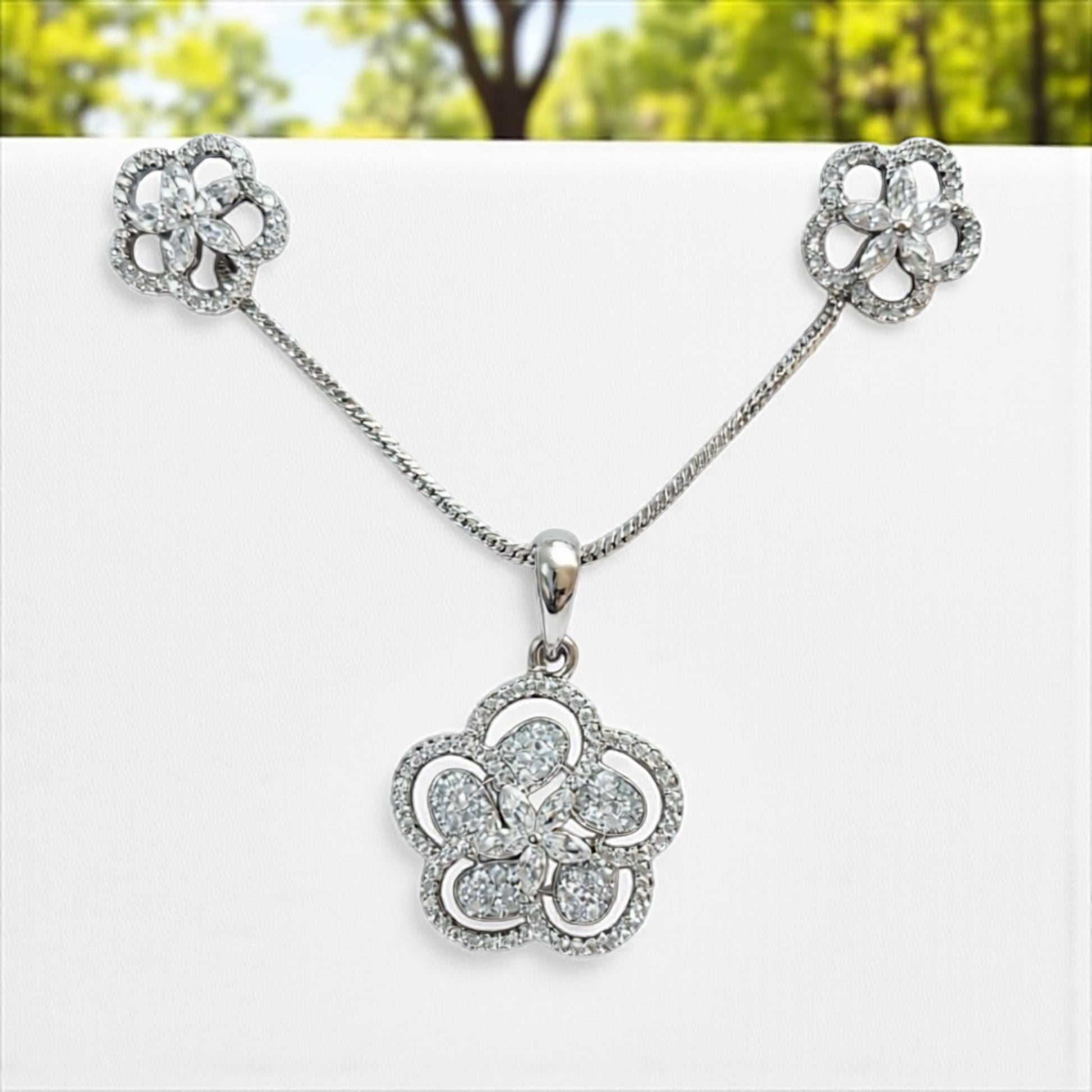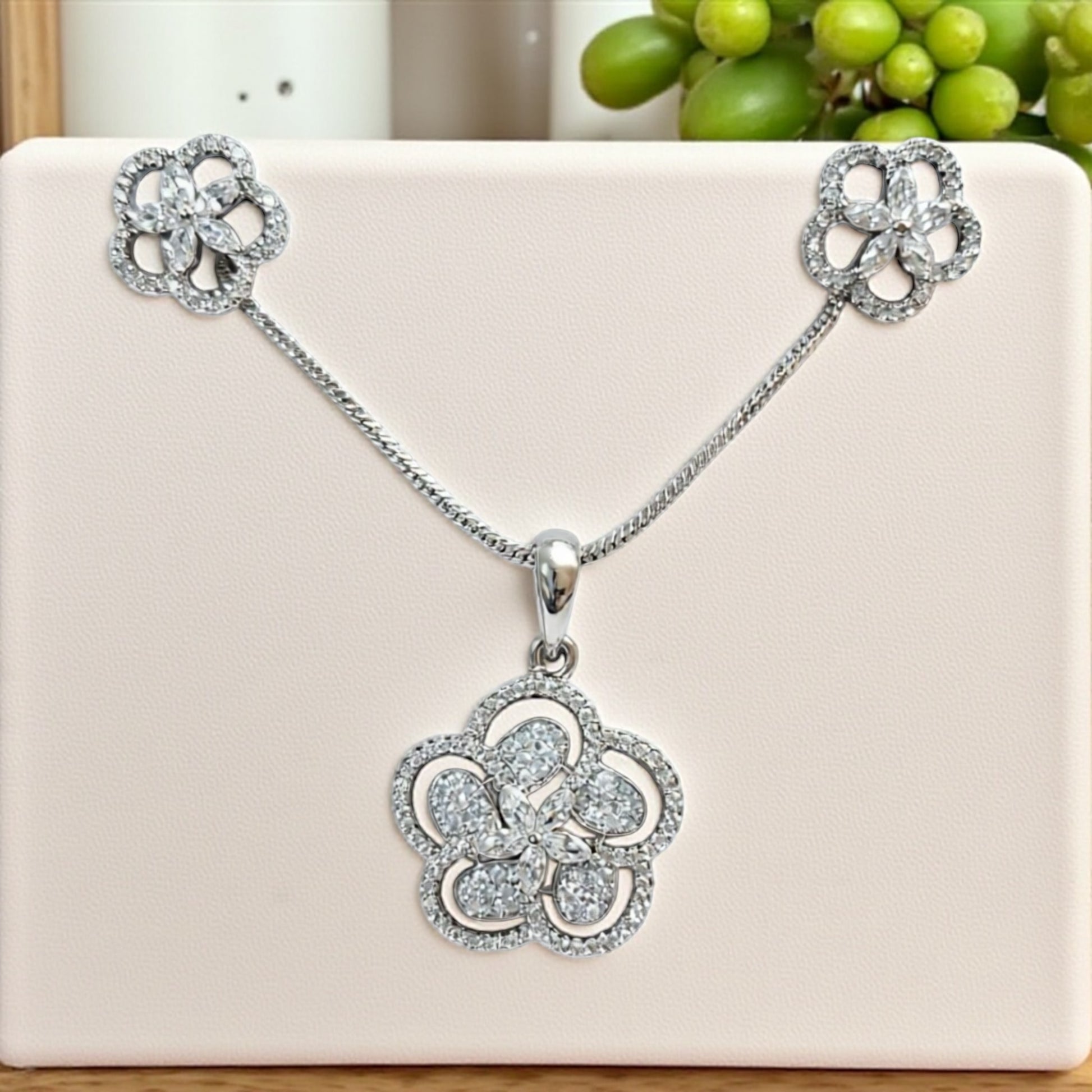 92859-PS-American Diamond Delicate Pendant Set With Rhodium Plating