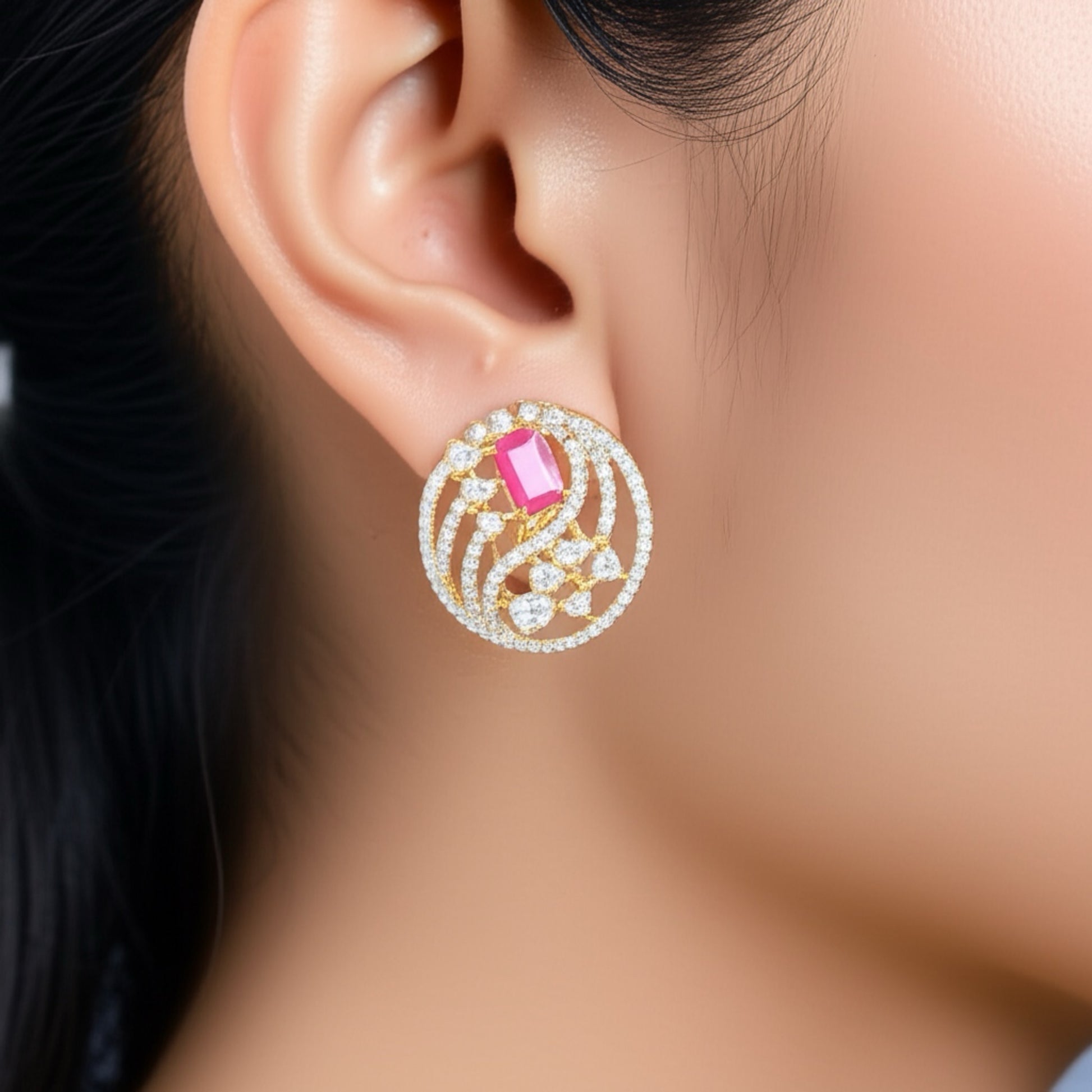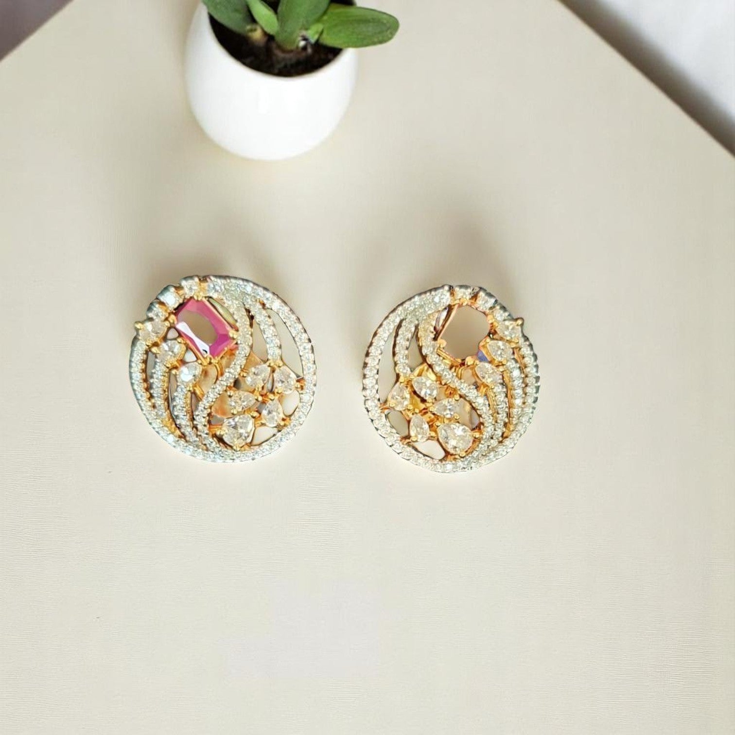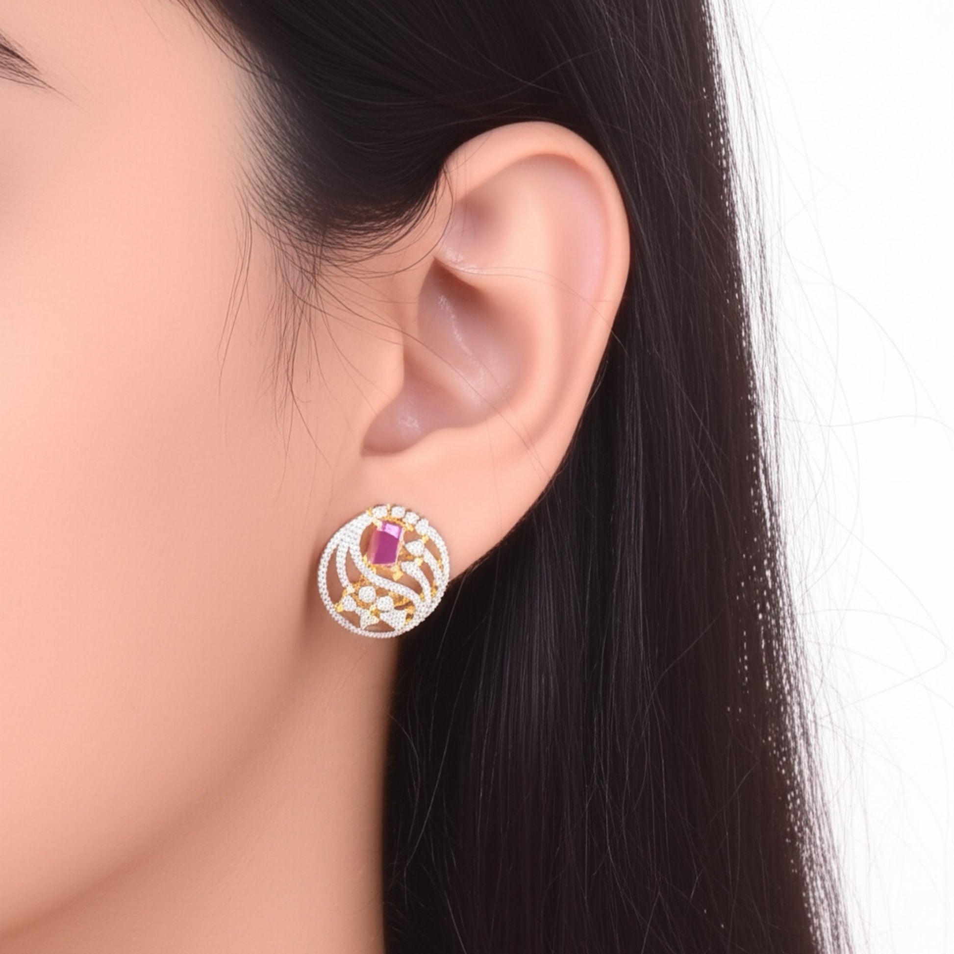 92909-ER CZ Earring With Gold/Rhodium Plating